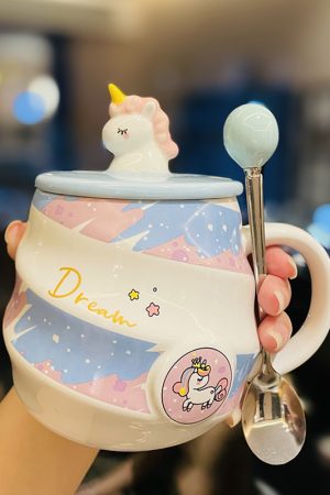 Colorful Rainbow Unicorn Ceramic Mug with Lid and Spoon, Cute Girly Water Cup for Office or Home Coffee High-quality product featuring cute everyday outfits, mermaid costume, alice in wonderland costume and more. Modern design that fits the latest trends. Premium materials ensure durability and comfort. Order now for special offers! Product designed with attention to every detail. Suitable for all occasions and personal styles.