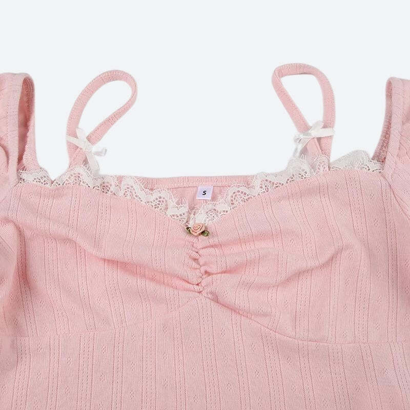 - Lace trim at bust