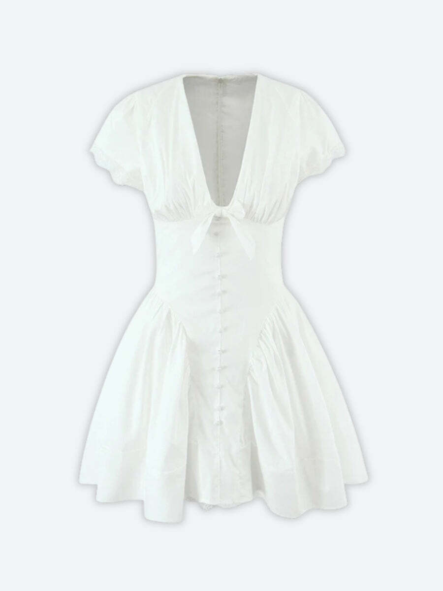 The Coquette Gingham Mini Dress brings sweet flirtation to life with a pink gingham print, dainty lace trim, and button-up front. Puff sleeves and a bow-tie neckline complete the ultra-feminine silhouette.