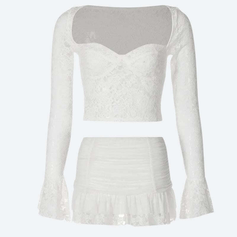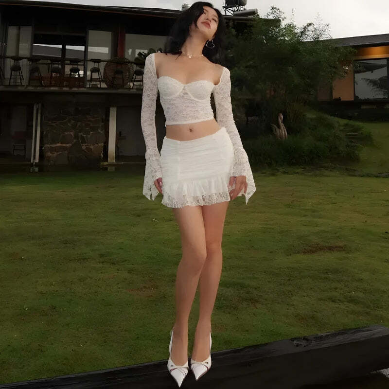 Coquette Lace Top & Ruched Mini Skirt Two Piece Set High-quality product featuring skirt outfits, pretty outfits, outfit ideas and more. Modern design that fits the latest trends. Premium materials ensure durability and comfort. Order now for special offers! Product designed with attention to every detail. Suitable for all occasions and personal styles.