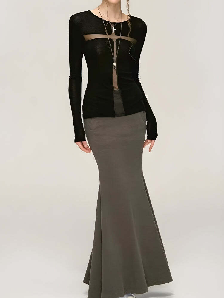 The Cross Cut Out Top is a sleek and edgy statement piece designed for fashion lovers who embrace dark aesthetics. Featuring a bold cross-shaped mesh cut-out at the chest, this long-sleeve top merges gothic and cyberpunk elements with a modern, sophisticated twist.