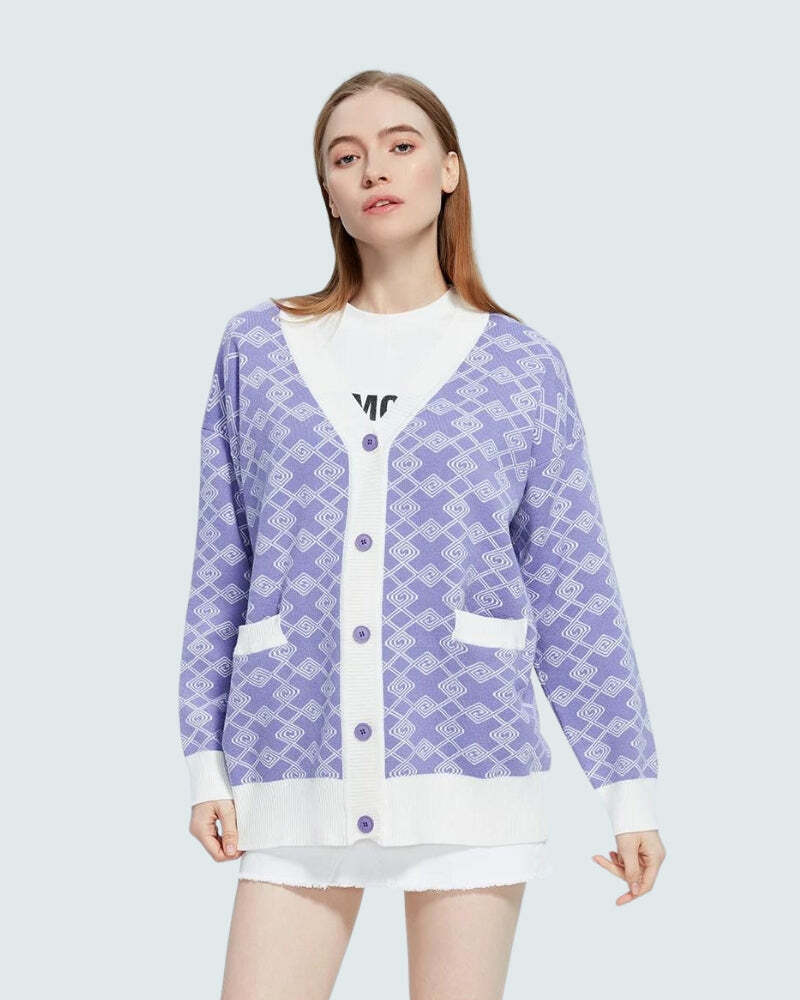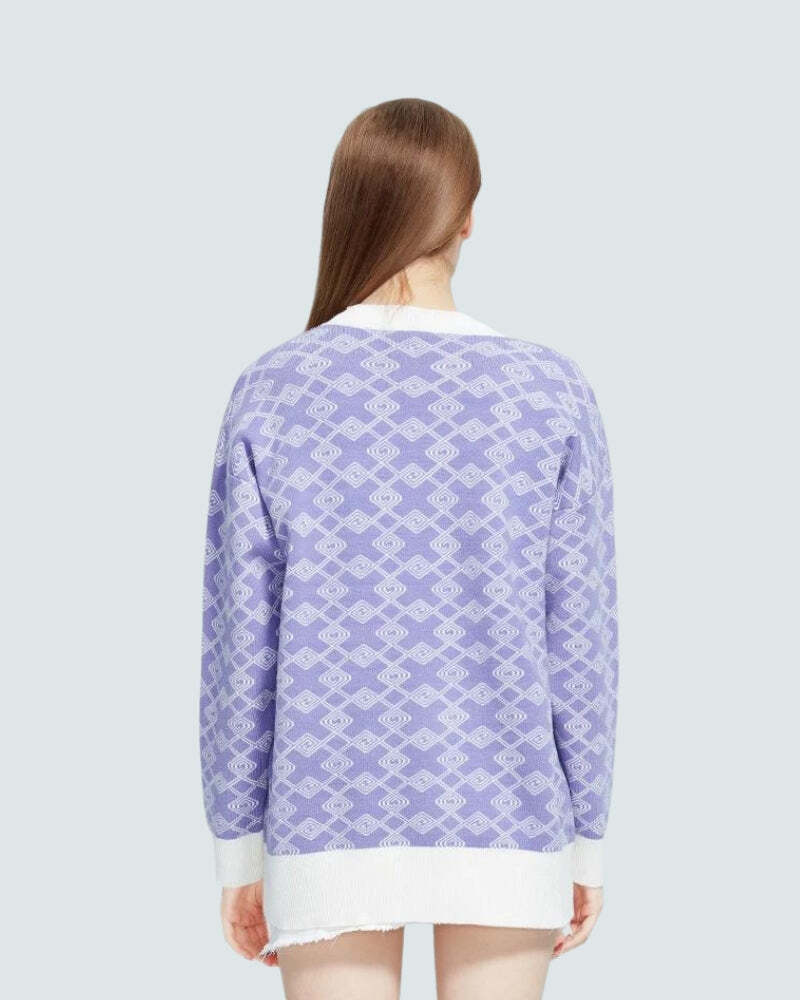 Cross Pattern Buttoned Purple Cardigan High-quality product featuring outfit ideas, outfit inspo fall, alice in wonderland costume and more. Modern design that fits the latest trends. Premium materials ensure durability and comfort. Order now for special offers! Product designed with attention to every detail. Suitable for all occasions and personal styles.