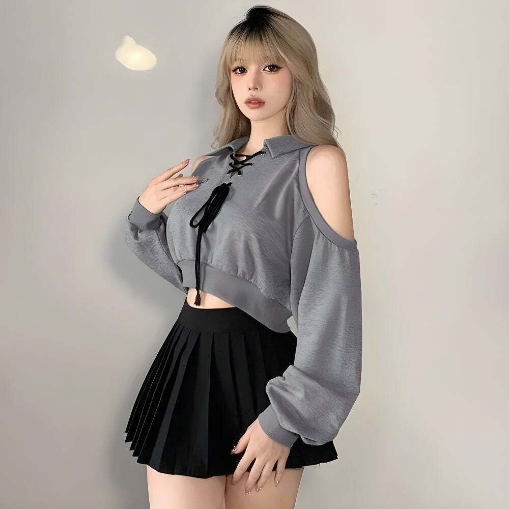 Cut Out Lace Up Cropped Sweatshirt High-quality product featuring going out outfits, outfit inspo, easy halloween costume and more. Modern design that fits the latest trends. Premium materials ensure durability and comfort. Order now for special offers! Product designed with attention to every detail. Suitable for all occasions and personal styles.