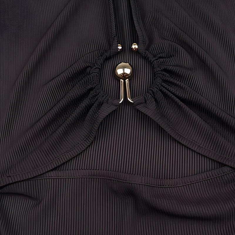Serve bold energy with this Cut Out Open Front Bodysuit. Designed with edgy front openings and sleek metal details, it nails the Y2K and streetwear aesthetic in one go.
