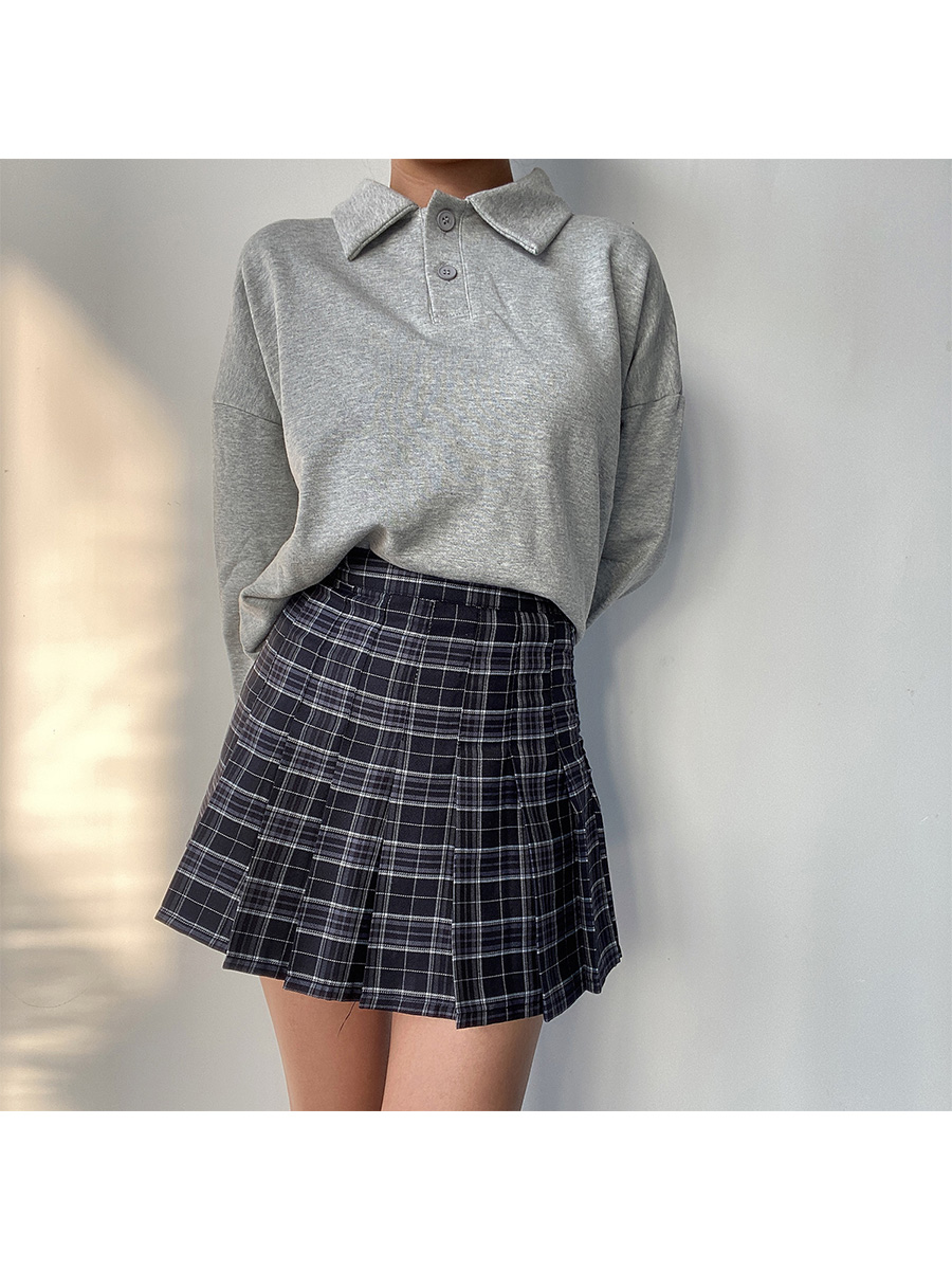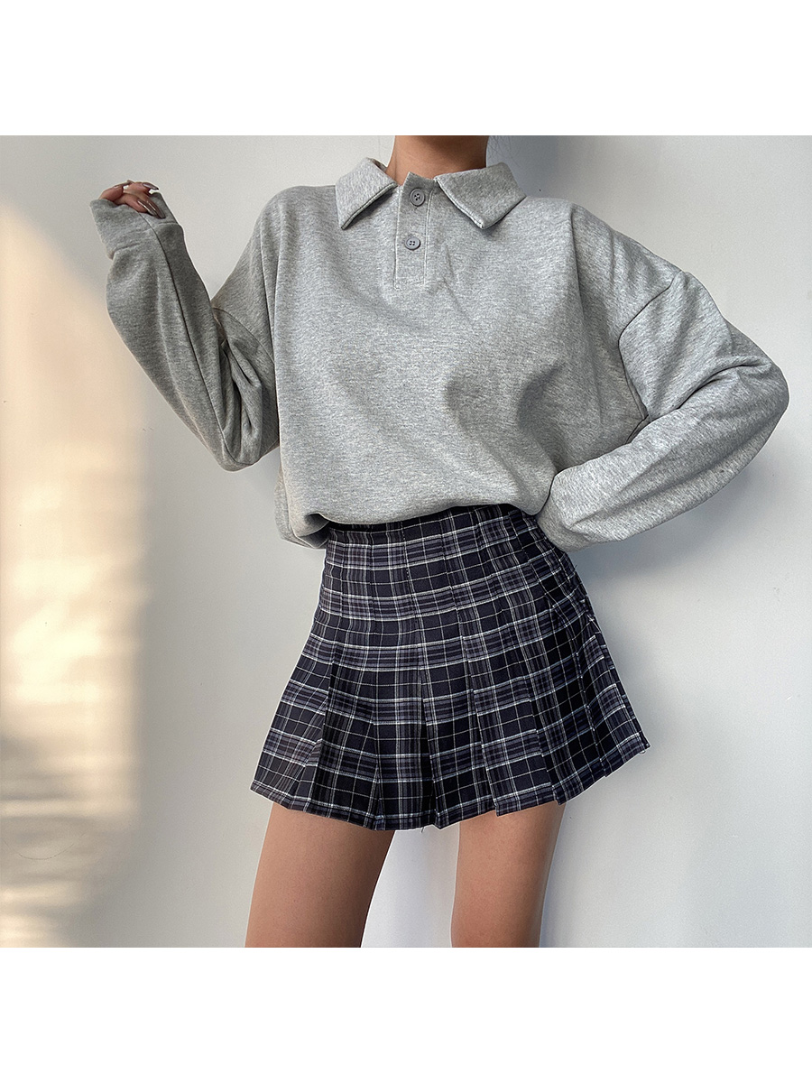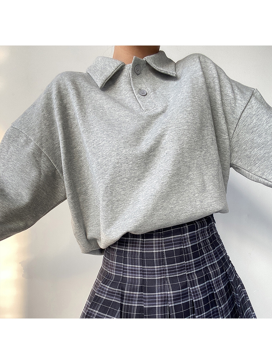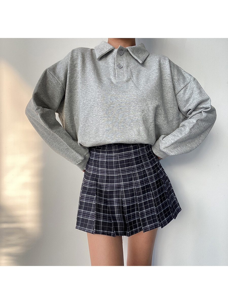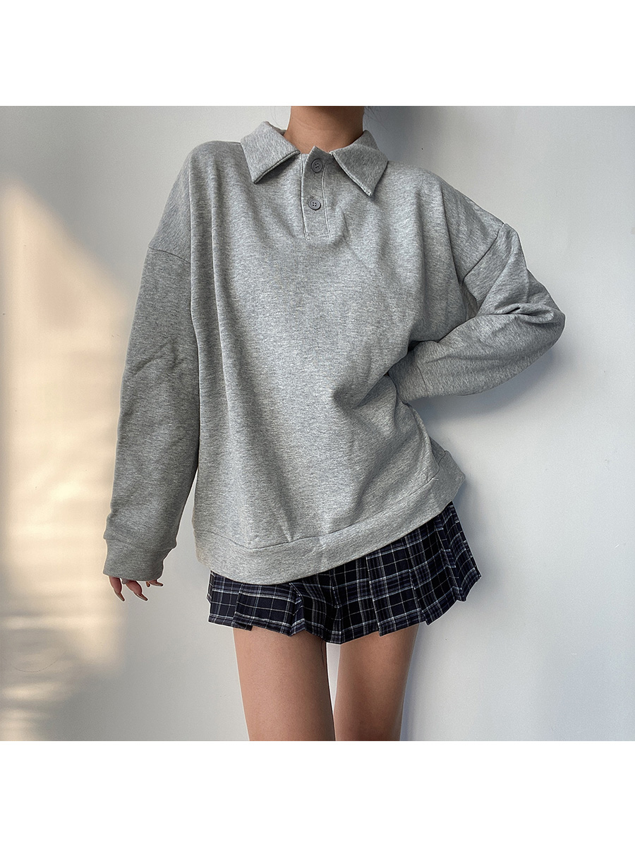 Cute Girl Polo Collar Loose Fit Long Sleeve Top Bf Solid Pull – Cute Everyday Outfits