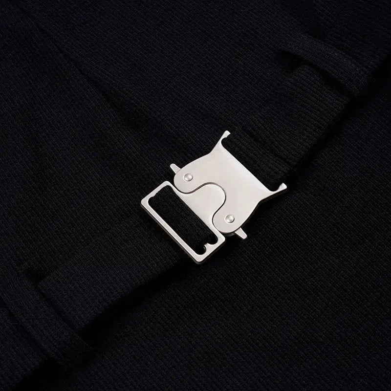 Embrace a futuristic look with this cyberpunk-style bodysuit, featuring ripped corduroy and a striking silver-toned belt buckle. The thumbhole detail adds an extra edge, making it a standout piece for Y2K, streetwear, or party outfits.