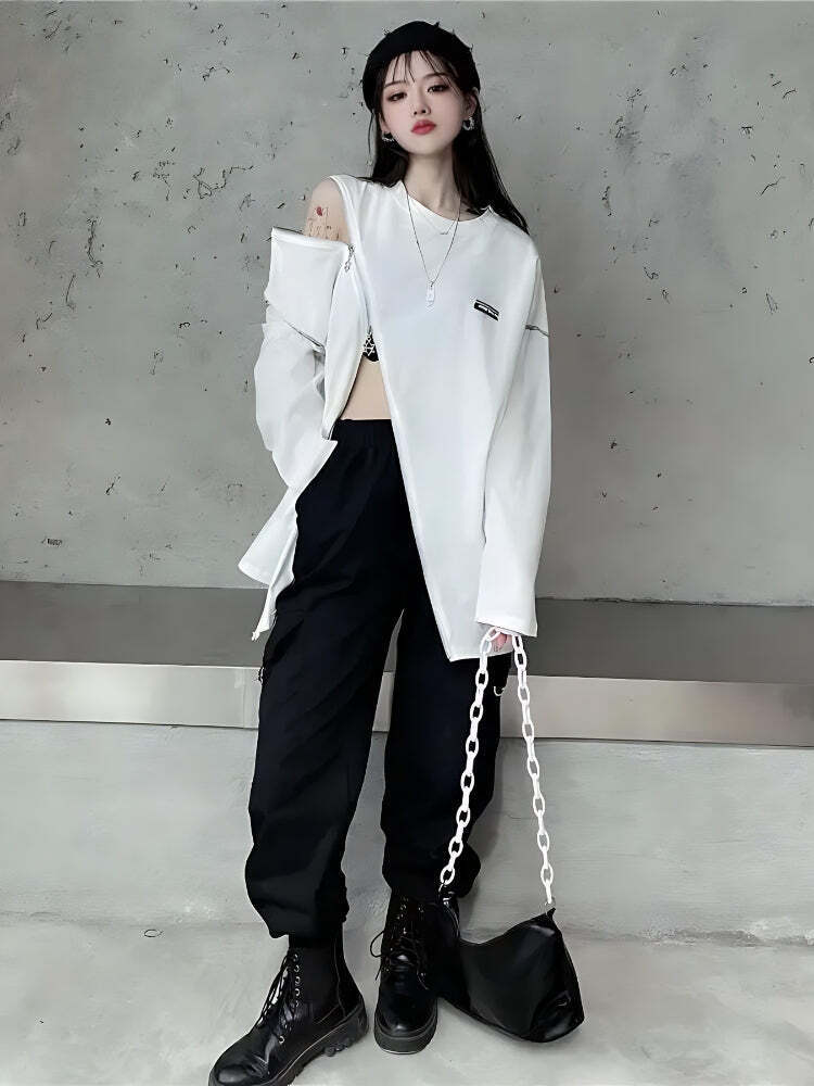 Cyberpunk Cross Zip-up Top – Outfit Inspo