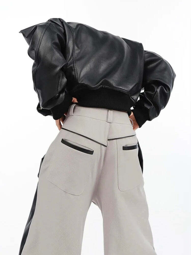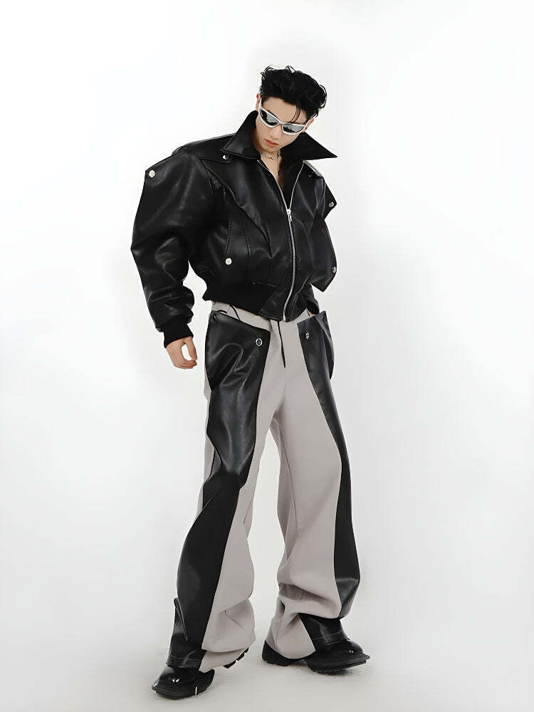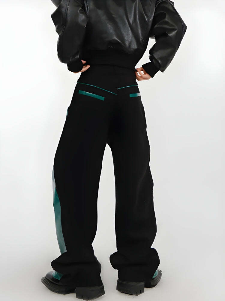 Go futuristic with these cyberpunk faux leather pants. Bold contrast panels and a wide-leg cut give them an edgy street style vibe. Rock them for concerts or daily wear.