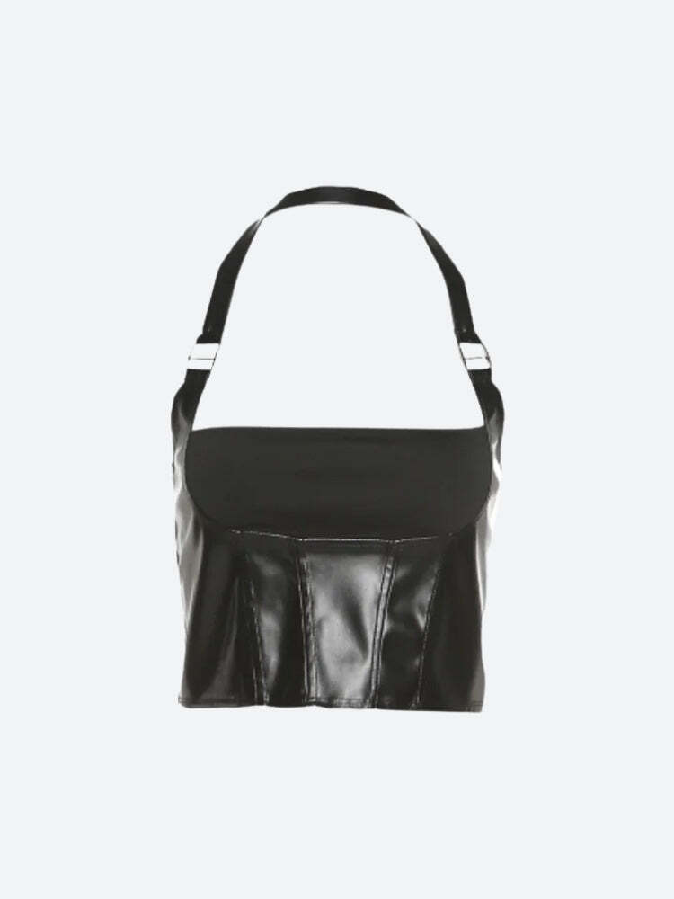 Bold and edgy, this halter neck crop top brings a cyberpunk twist to your wardrobe. Designed with a sleek faux leather look and metal buckle straps, it sculpts your shape while adding attitude. Pair it with cargos or leather for that rebellious, futuristic vibe made for nightlife or streetwear scenes.