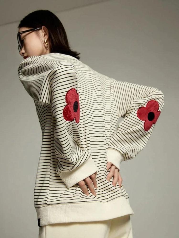 Daisy Embroidered Striped Sweatshirt High-quality product featuring dream clothes, vacation outfits, fairy costume and more. Modern design that fits the latest trends. Premium materials ensure durability and comfort. Order now for special offers! Product designed with attention to every detail. Suitable for all occasions and personal styles.