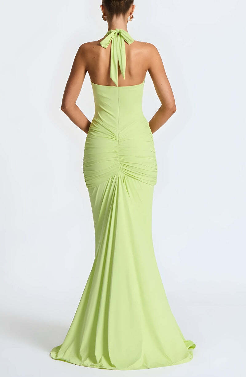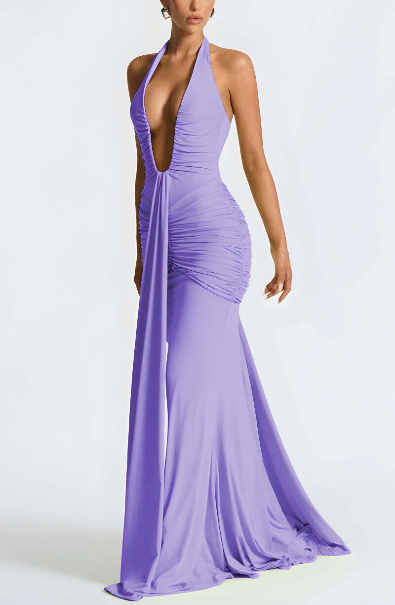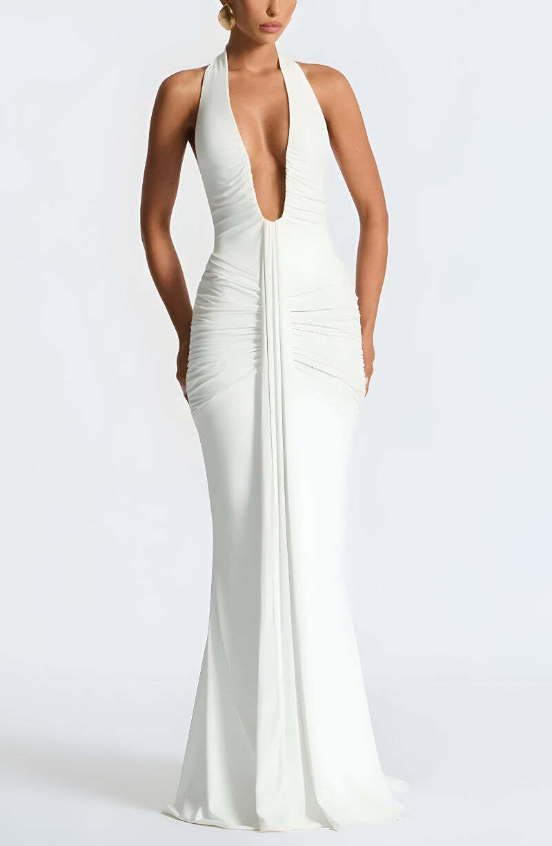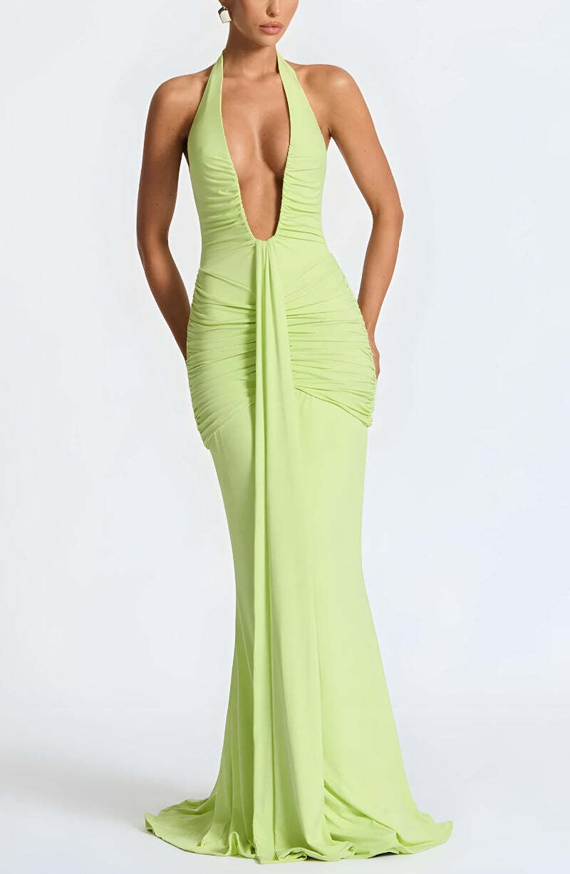 Deep Plunge Ruched Maxi Dress – Outfit Inspo Fall