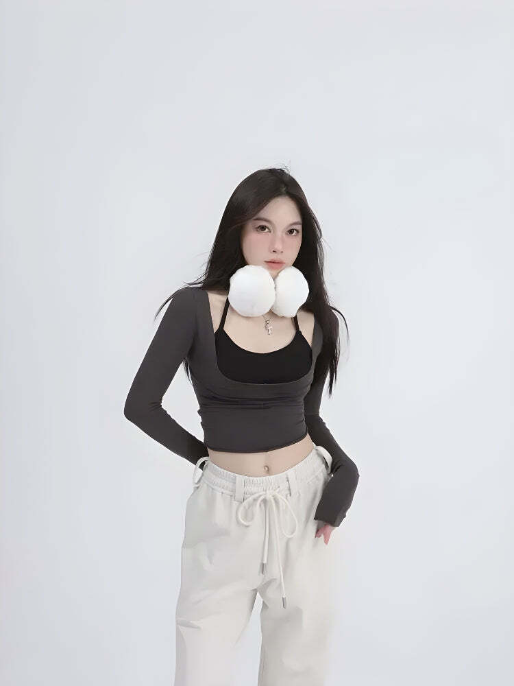 Deep Scoop Neck Two Piece Set Top – 90s Fashion