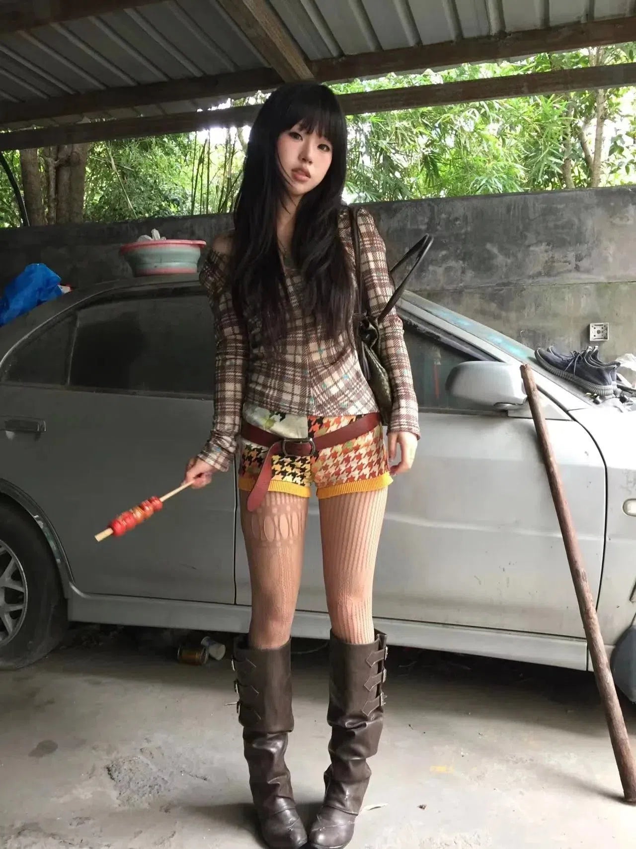 This deep V-neck plaid top blends retro aesthetics with modern streetwear vibes. Its fitted silhouette and button-up front create a flattering look, while the plaid pattern adds a vintage touch. A versatile piece perfect for layering or wearing solo.
