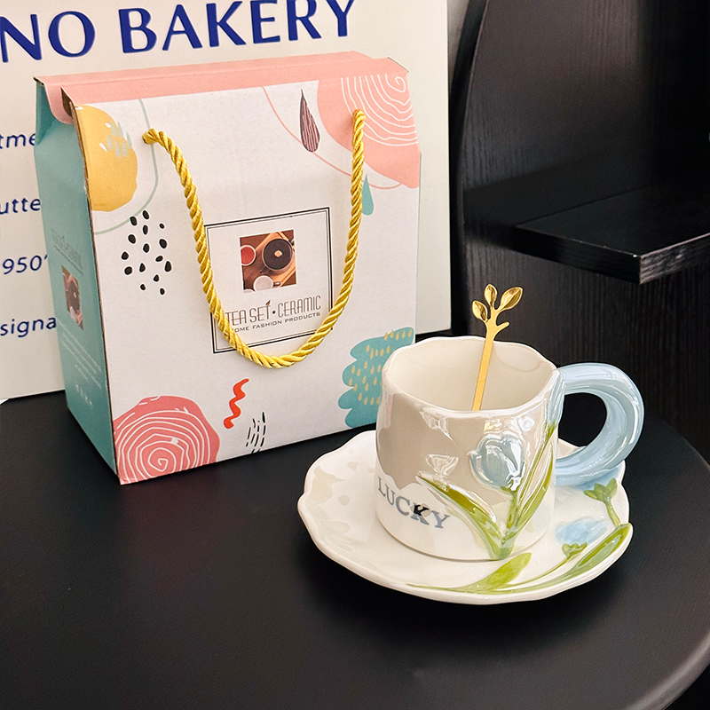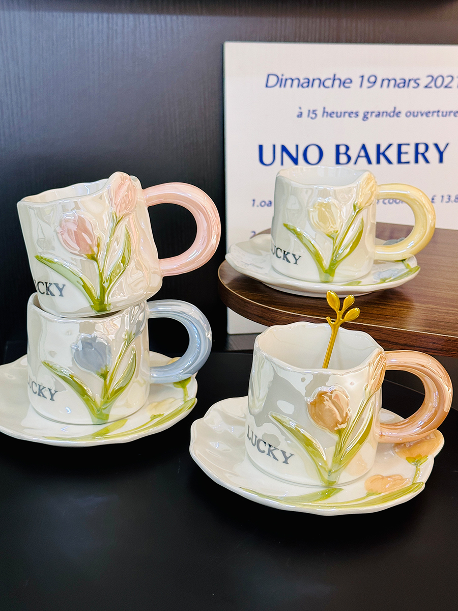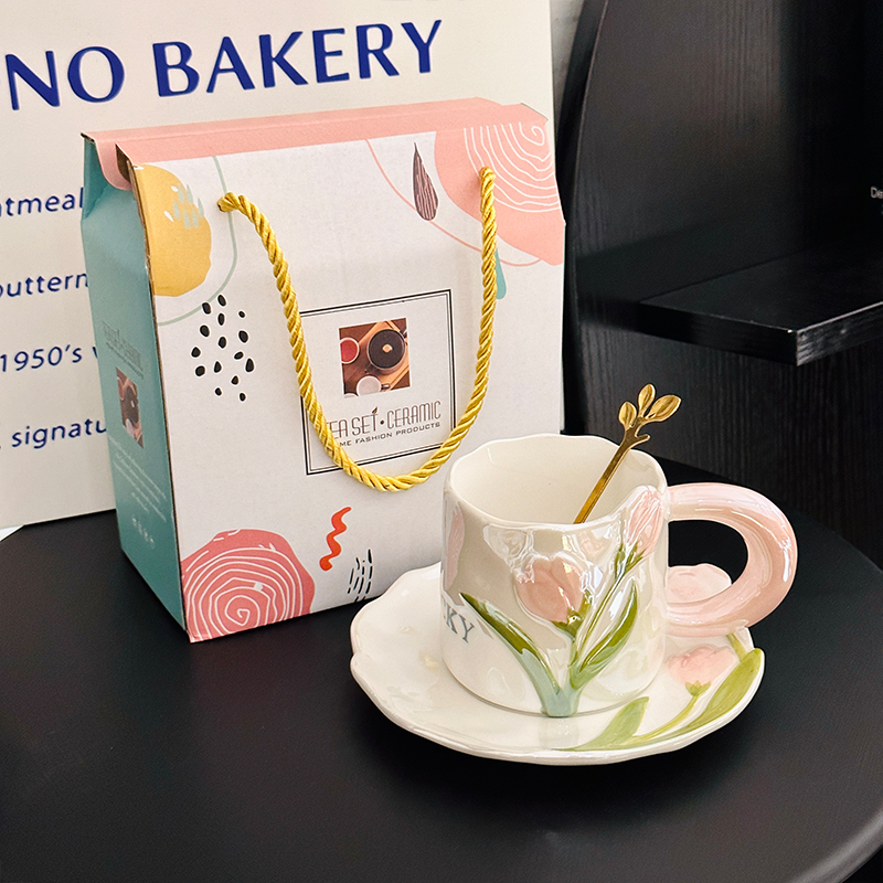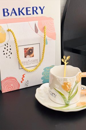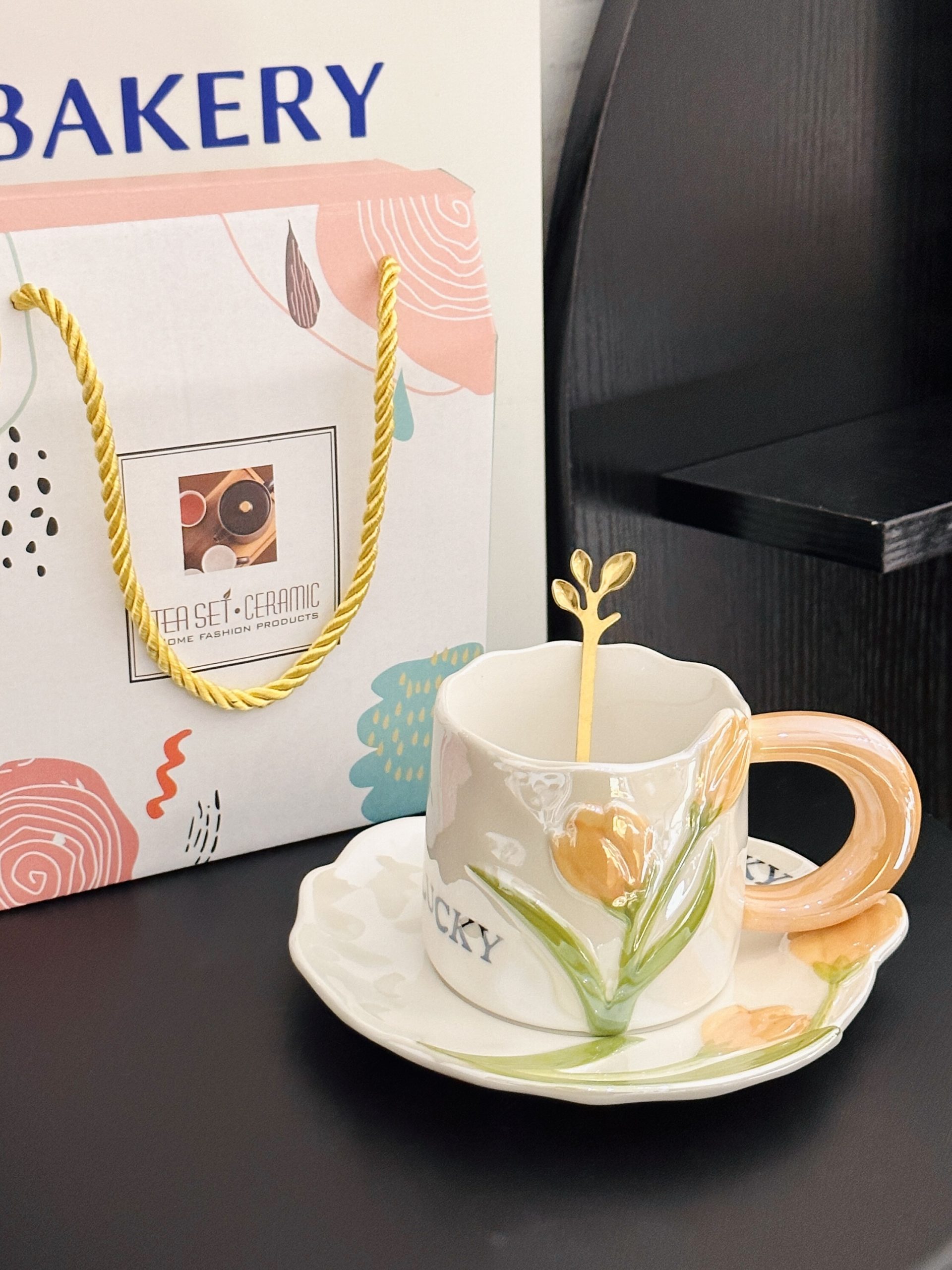Delicate Pearl Glaze Tulip Ceramic Cup and Saucer Set – Elegant Cof – Birthday Outfit