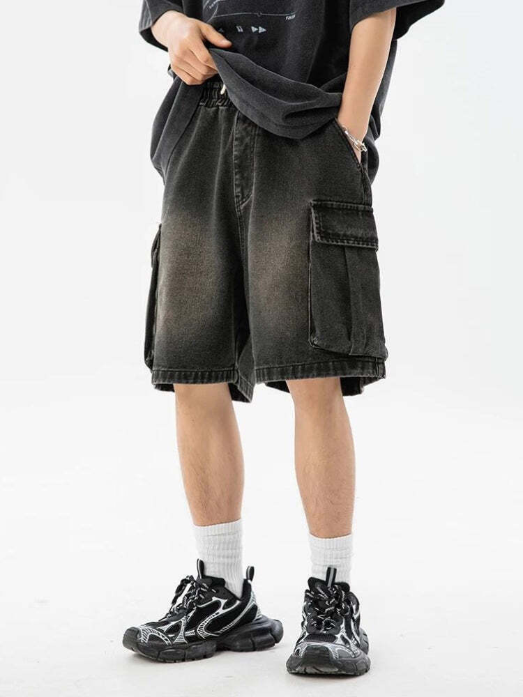 Denim Drawstring Wide Leg Cargo Shorts – Cargo Pants Outfit
