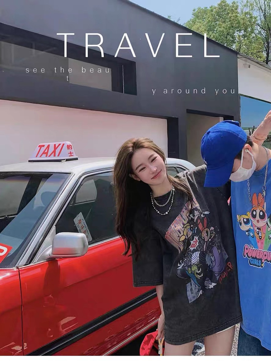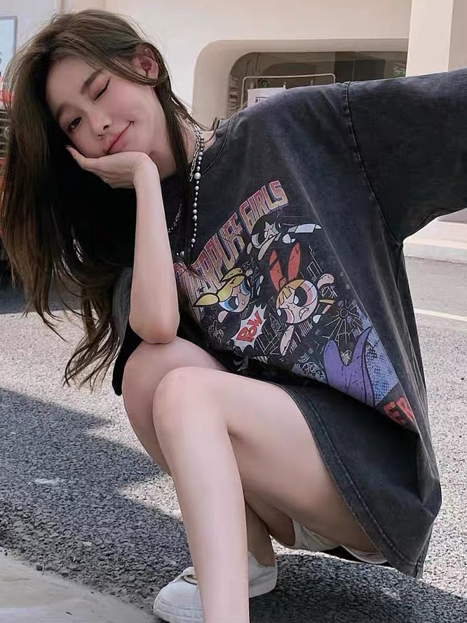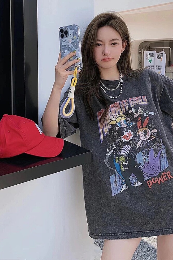 Retro Powerpuff Short Sleeve Women Casual Loose Fit Top – Casual Outfits