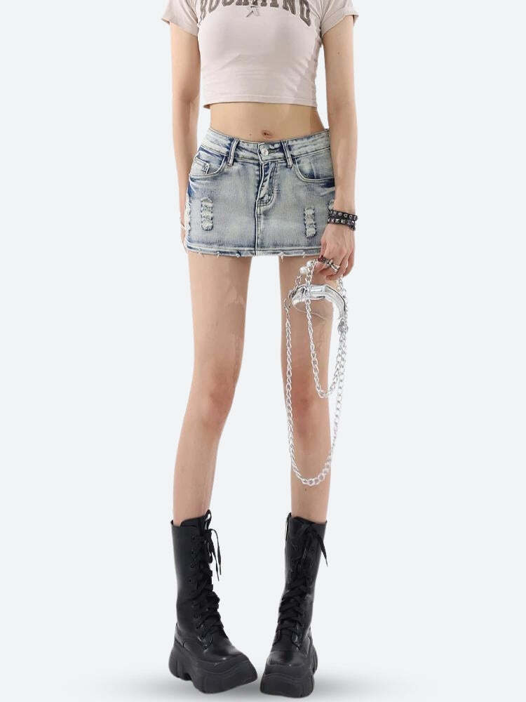 Distressed Low Rise Mini Skirt High-quality product featuring outfit inspo fall, outfit inspo, last minute halloween costume and more. Modern design that fits the latest trends. Premium materials ensure durability and comfort. Order now for special offers! Product designed with attention to every detail. Suitable for all occasions and personal styles.