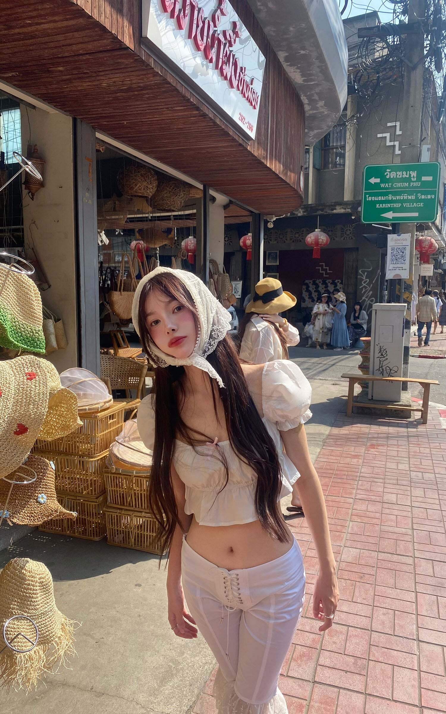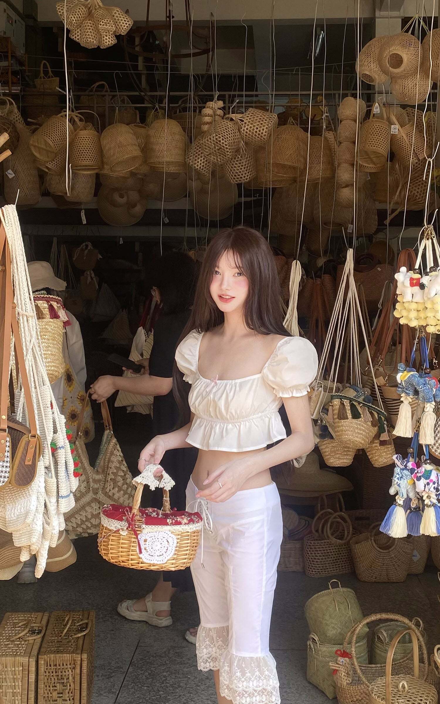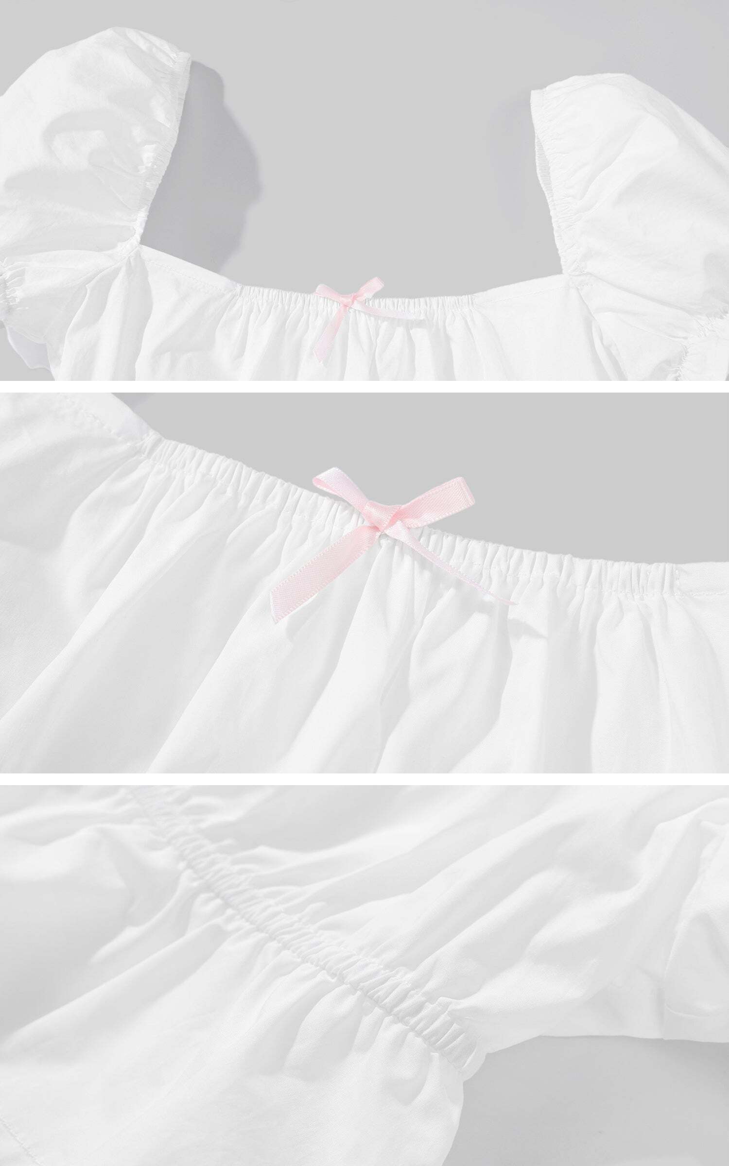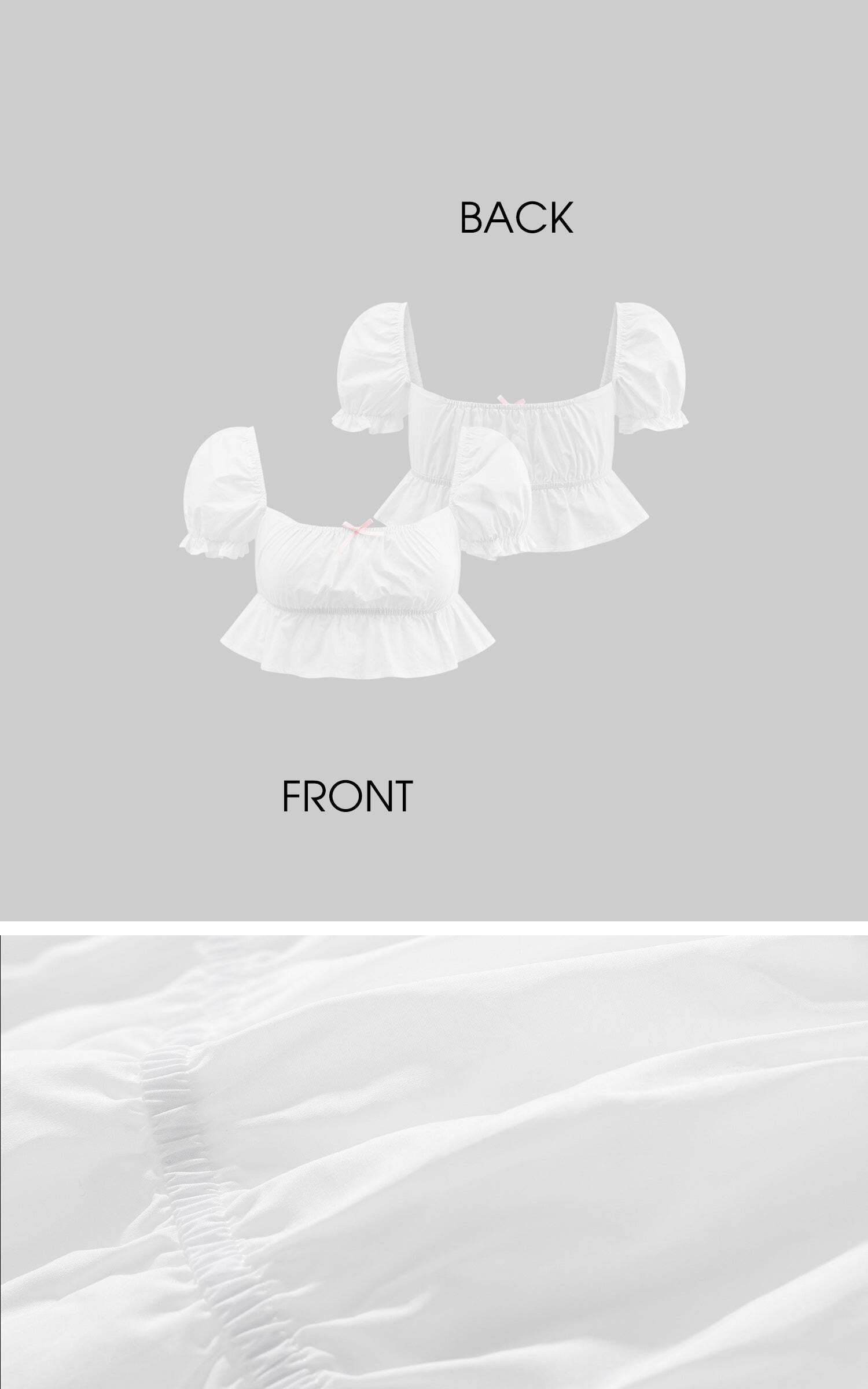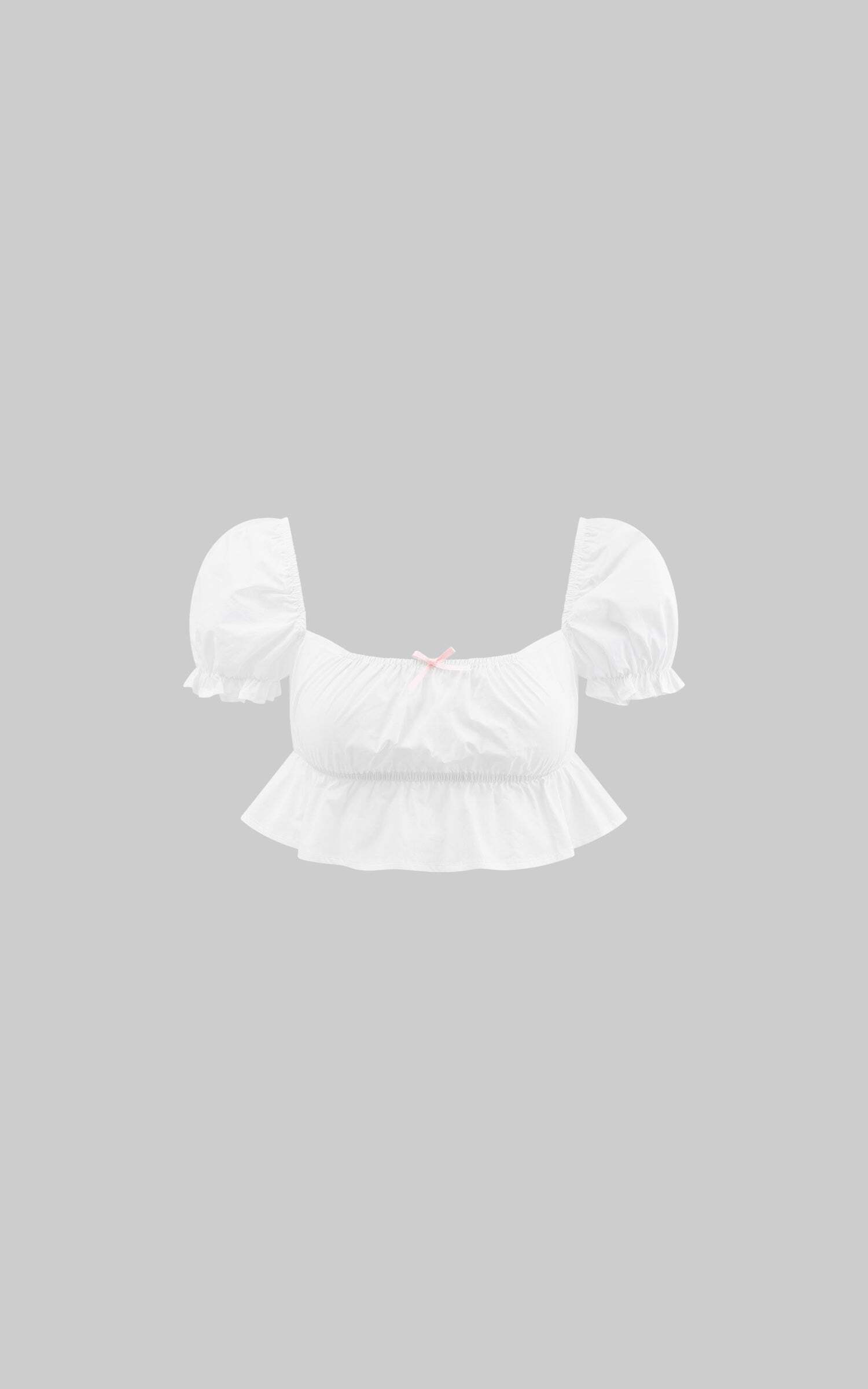 Soft sunlight, woven baskets, and that one perfect blouse—this dreamy crop top was made for sun-drenched days and impromptu adventures. Crafted from crisp white cotton with puffed sleeves and a flouncy peplum hem, it’s finished with a dainty pink bow that whispers sweetness. Whether paired with lacy bloomers or a breezy skirt, it’s the kind of piece that makes even a walk to the market feel like a scene from a storybook.