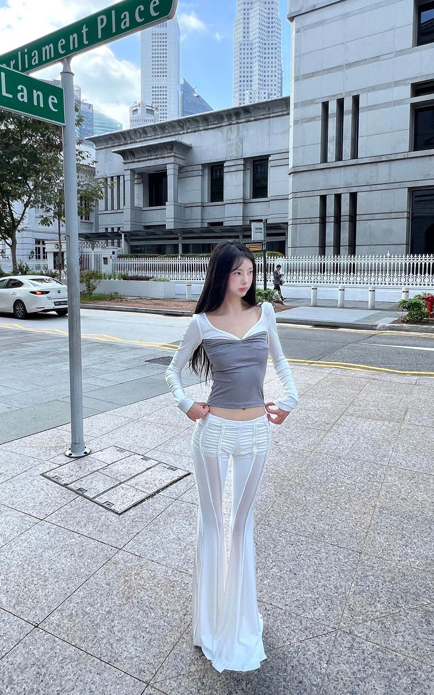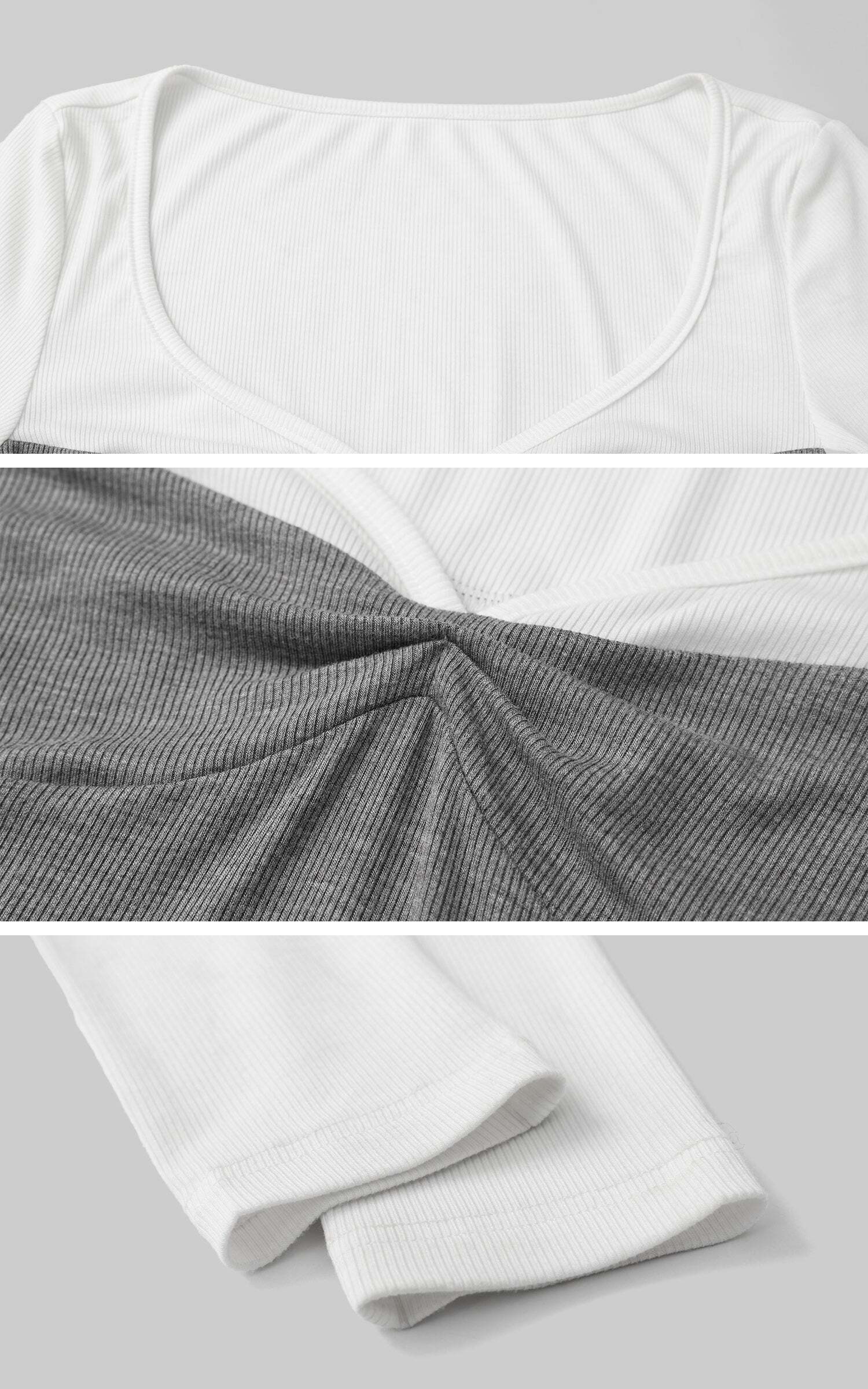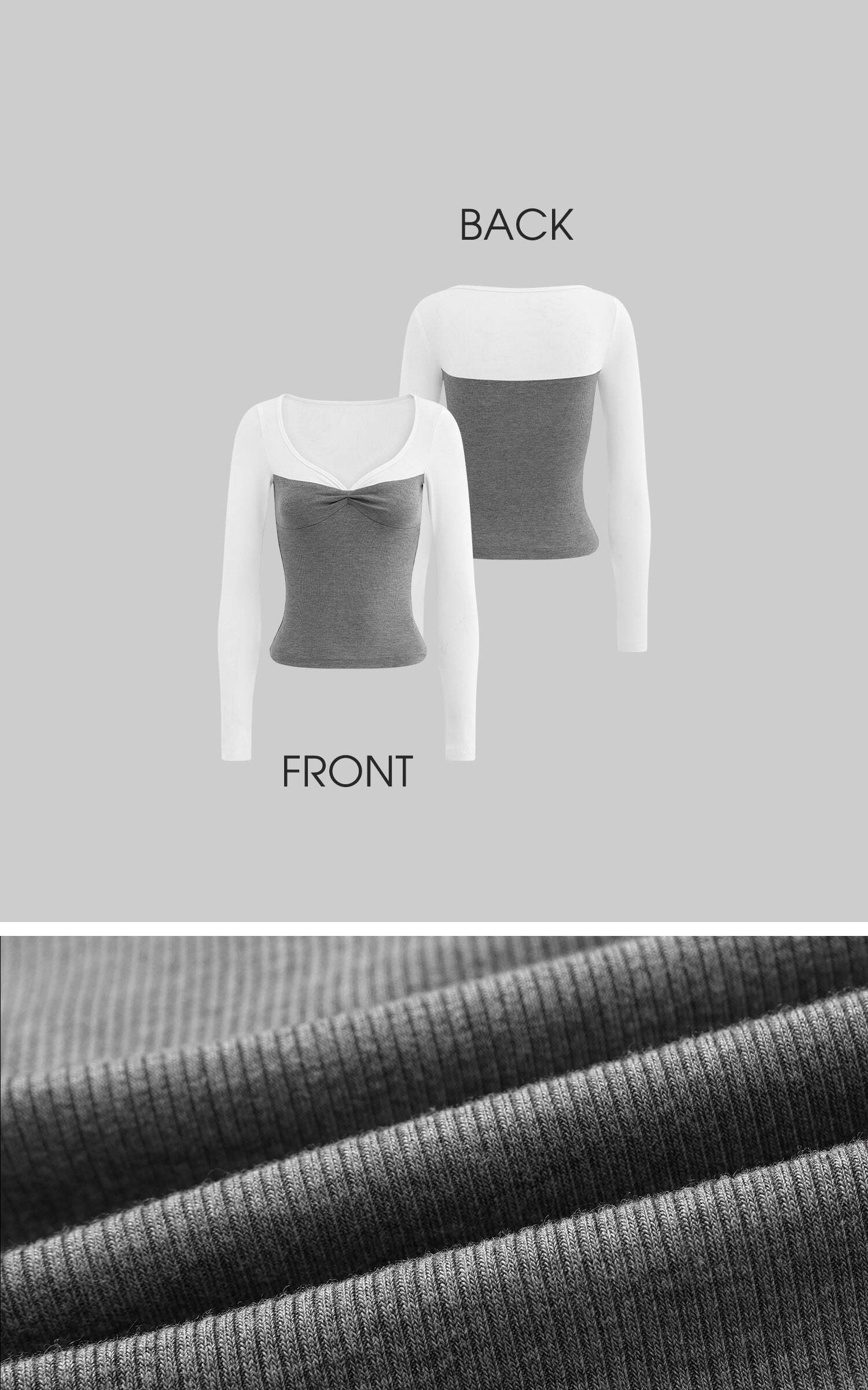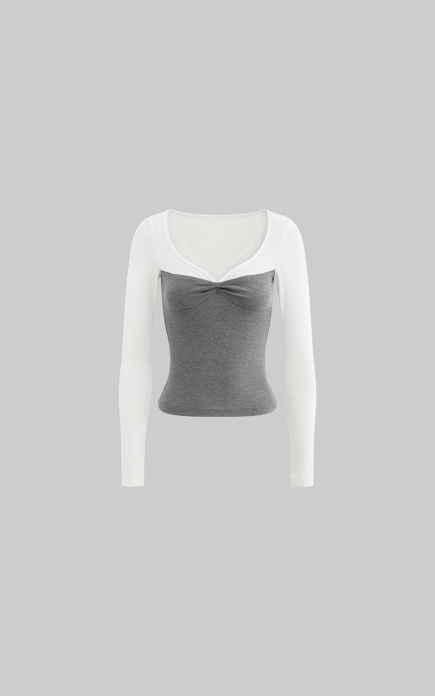 A modern-day love letter to layering—this long sleeve tee gives the illusion of two perfectly paired pieces in one. Designed with a sweetheart-inspired neckline and subtle twist detail at the bust, it flatters the figure while staying effortlessly comfortable. The ribbed knit hugs gently and moves with you, while the contrast colorblock adds a dash of flirty charm. Perfect for slow Sunday strolls, museum dates, or spontaneous city escapes.