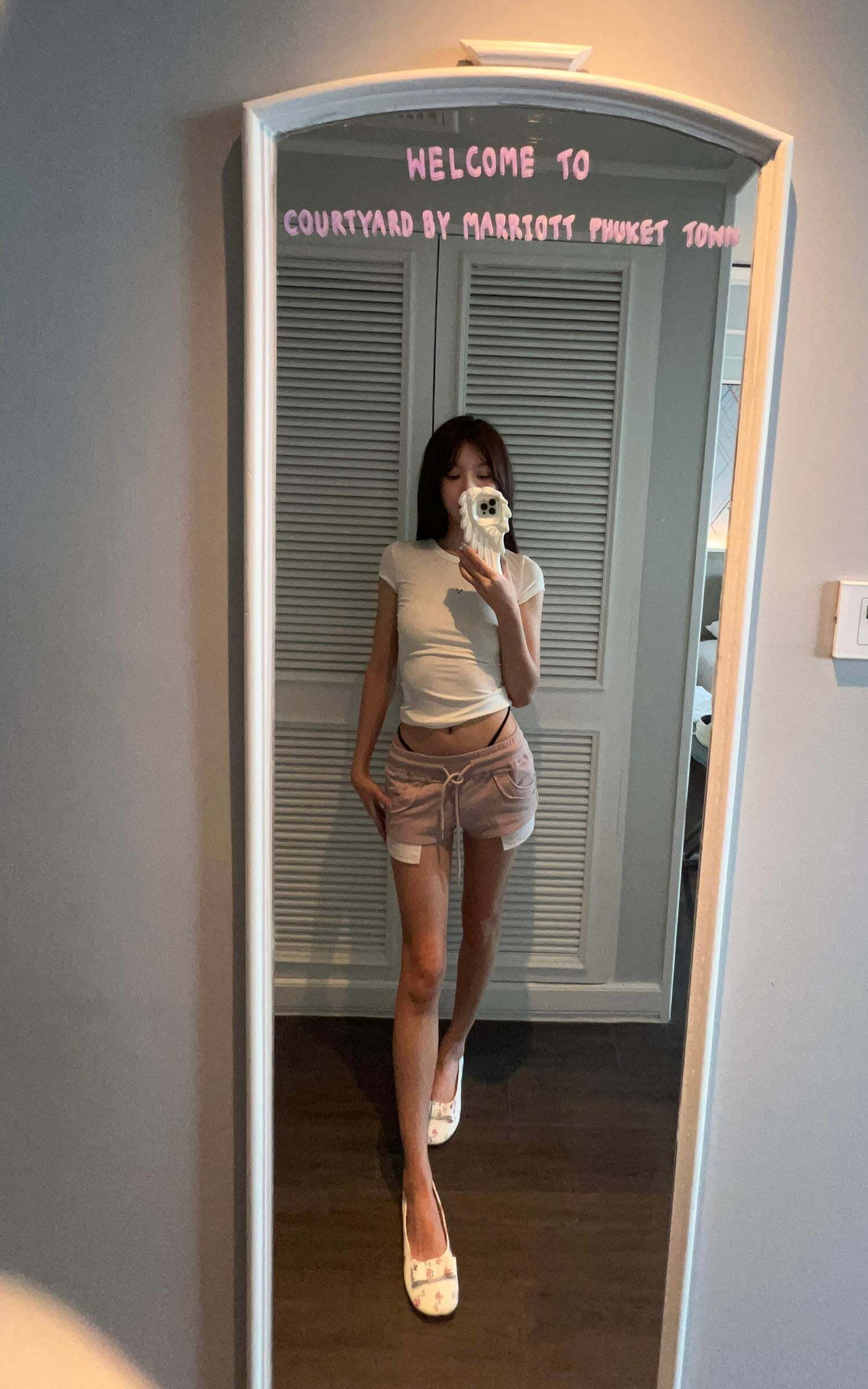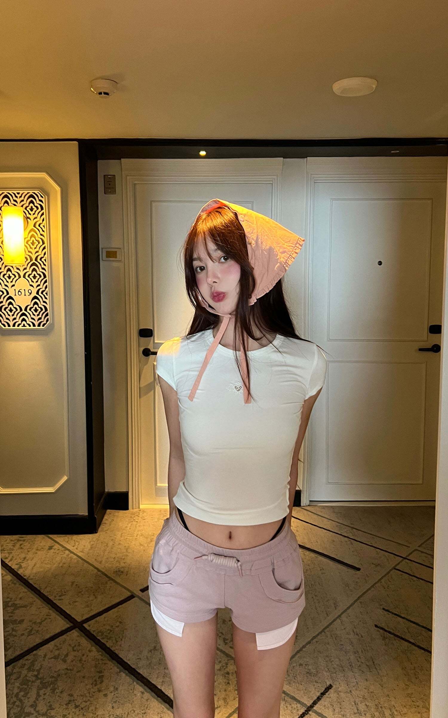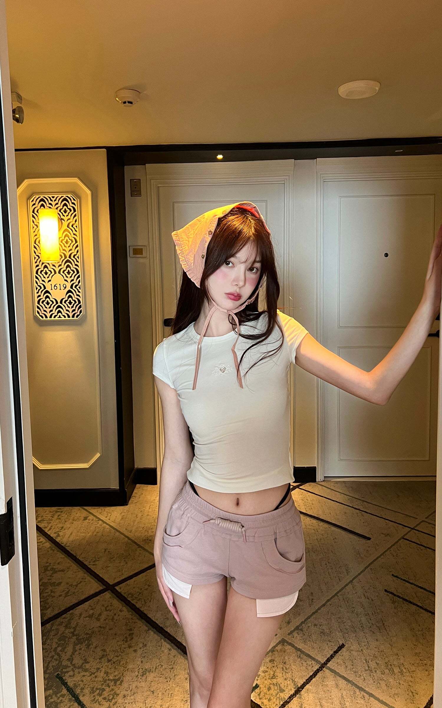 A fresh twist on your go-to lounge staple. These ultra-soft shorts feature a curved hemline trimmed with contrast fabric that subtly peeks out, giving the illusion of layers without the fuss. The mid-rise silhouette flatters with a wide elastic waistband and adjustable drawstring, offering a comfy yet cinched fit. Rounded patch pockets in the front add structure and a touch of utilitarian charm. Perfect for slow mornings, lazy afternoons, or laid-back coffee runs — just throw on a baby tee or bandeau top and you’re effortlessly styled.