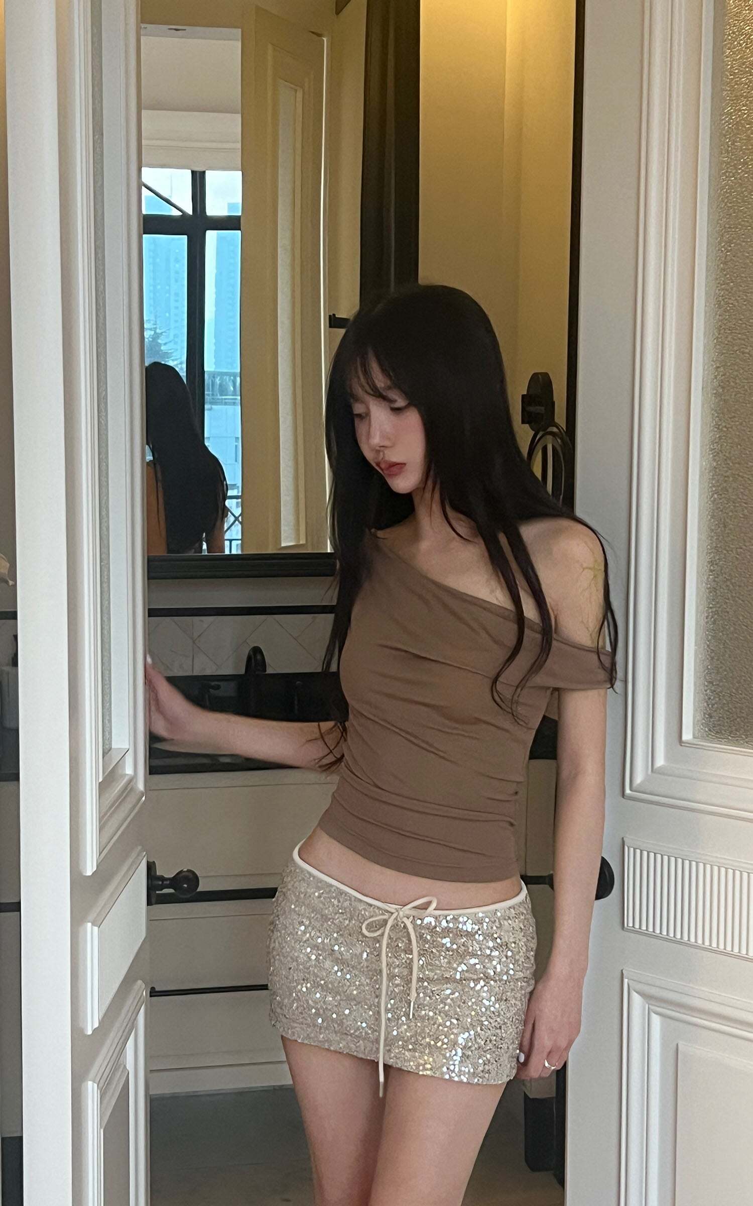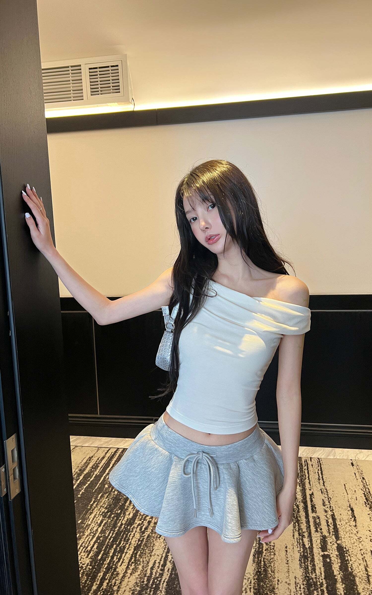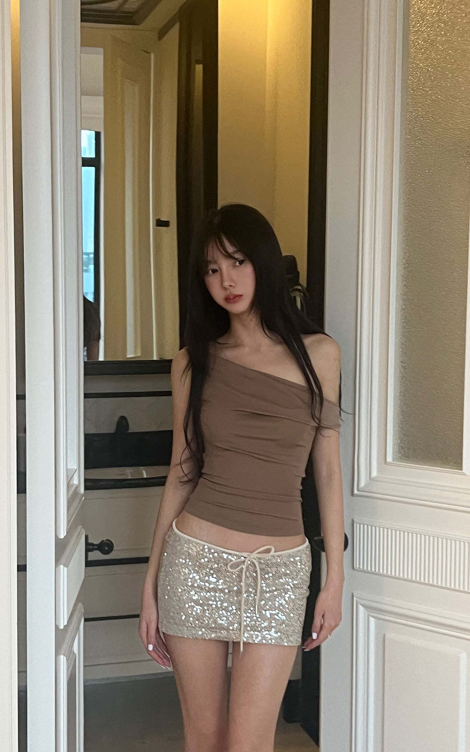 Chic and subtly sensual, this off-shoulder knit top is your go-to for effortless elegance. Designed with a softly draped neckline that graces the collarbones, it brings a romantic twist to a structured silhouette. The stretchy ribbed fabric hugs your curves with comfort, while the one-shoulder-like drape adds a dash of allure. Pair it with playful mini skirts or slouchy denim — it’s made for dreamy days and late-night adventures alike.