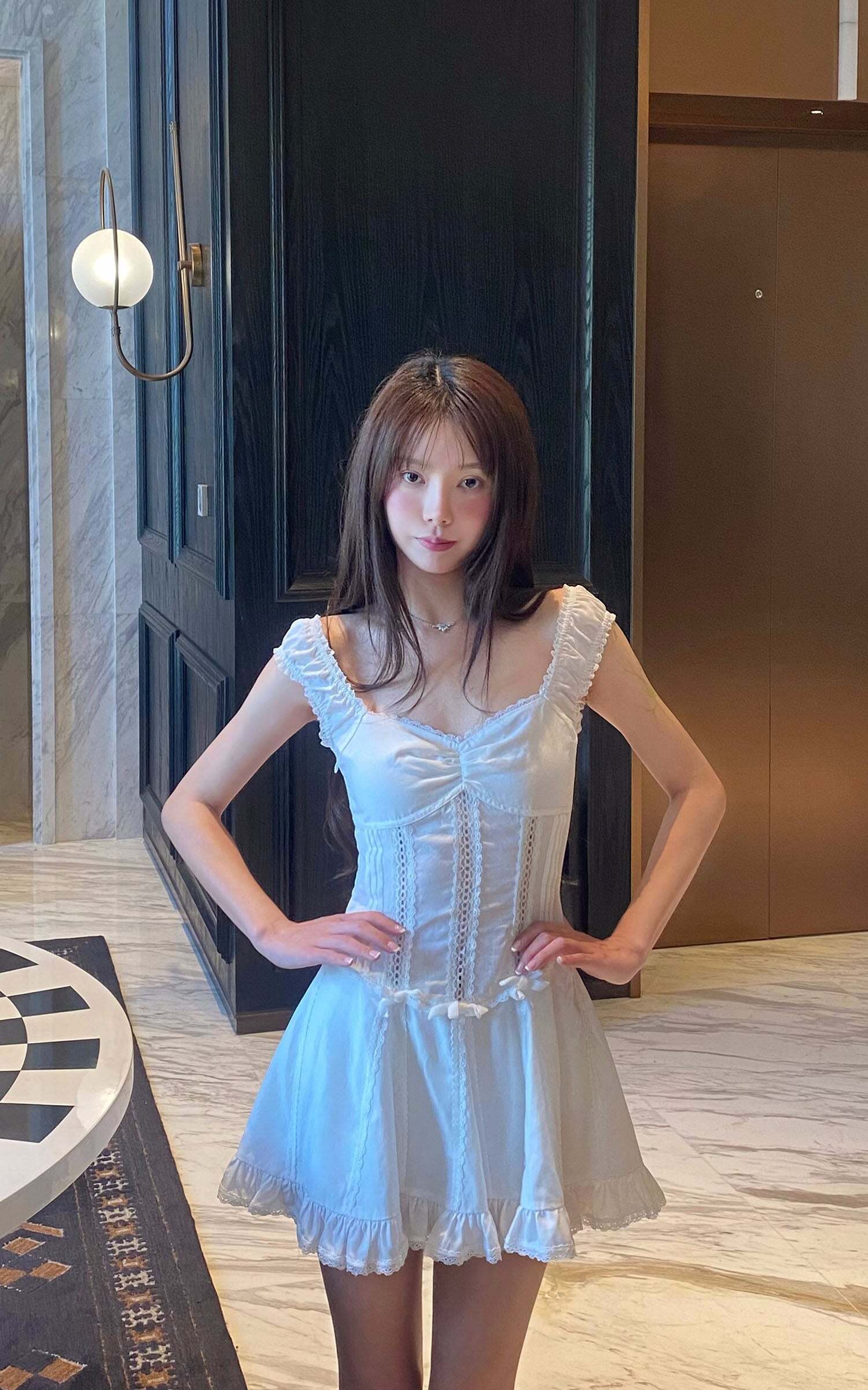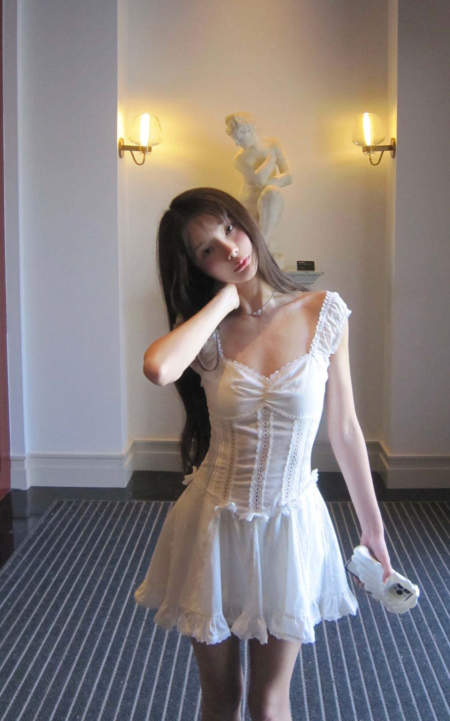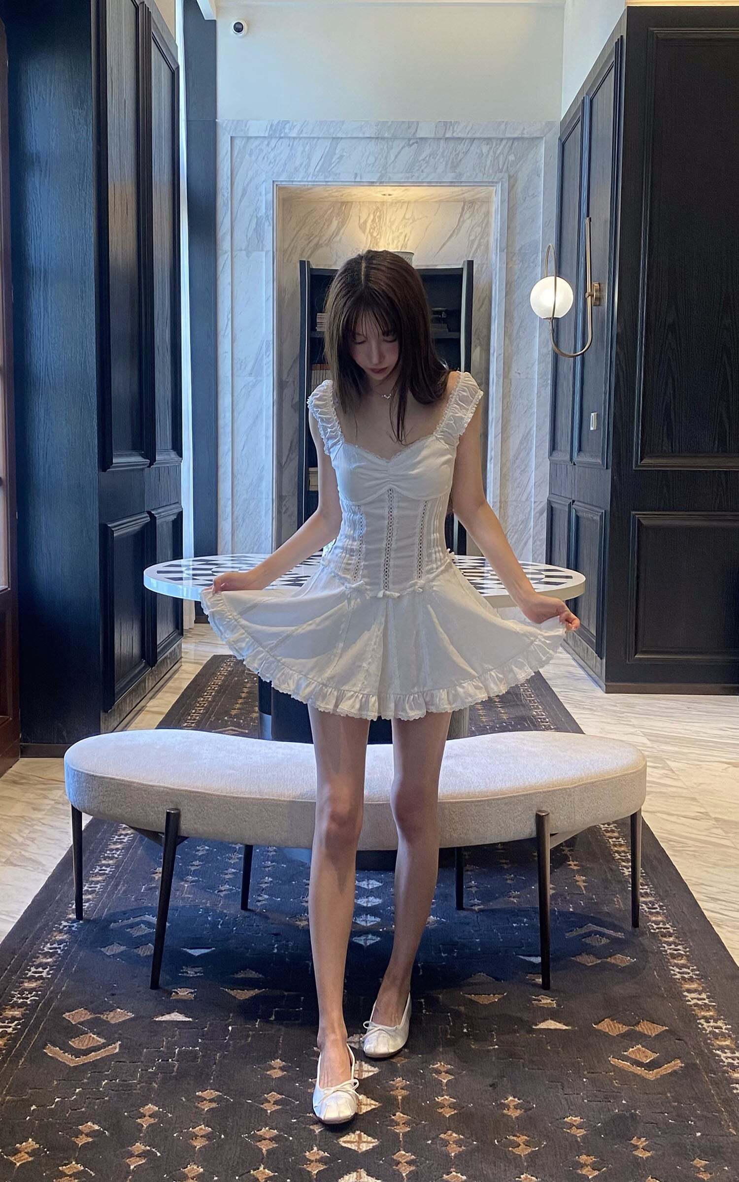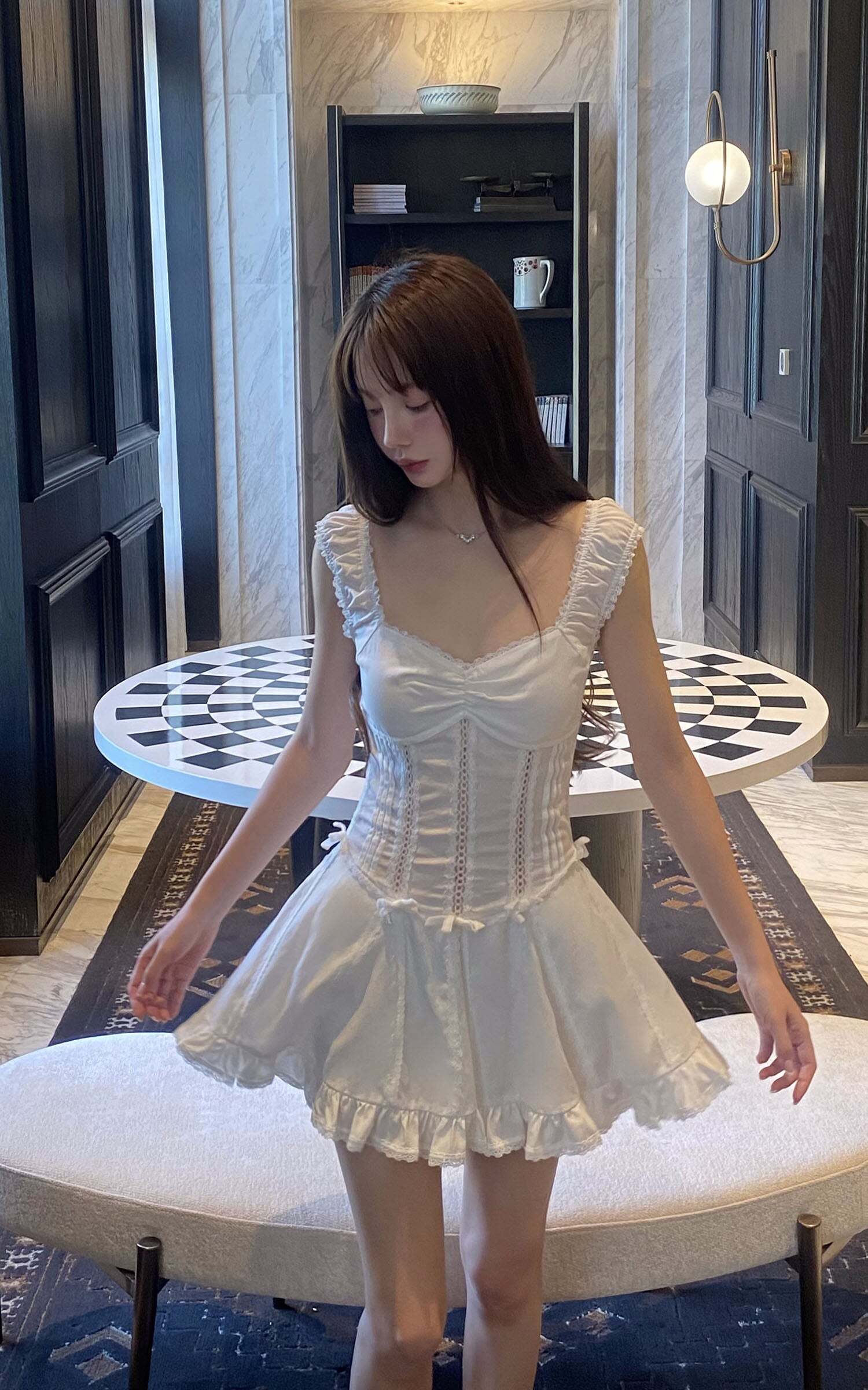 Ruffle-edge Bow Lace Mini Dress: a Must-have in Dream Clothes