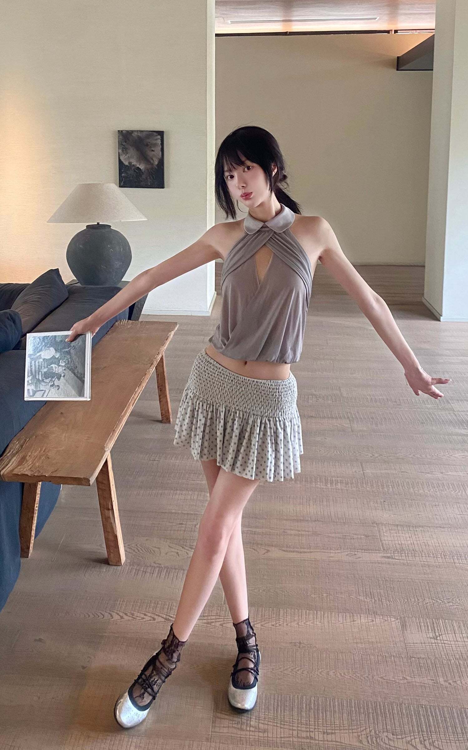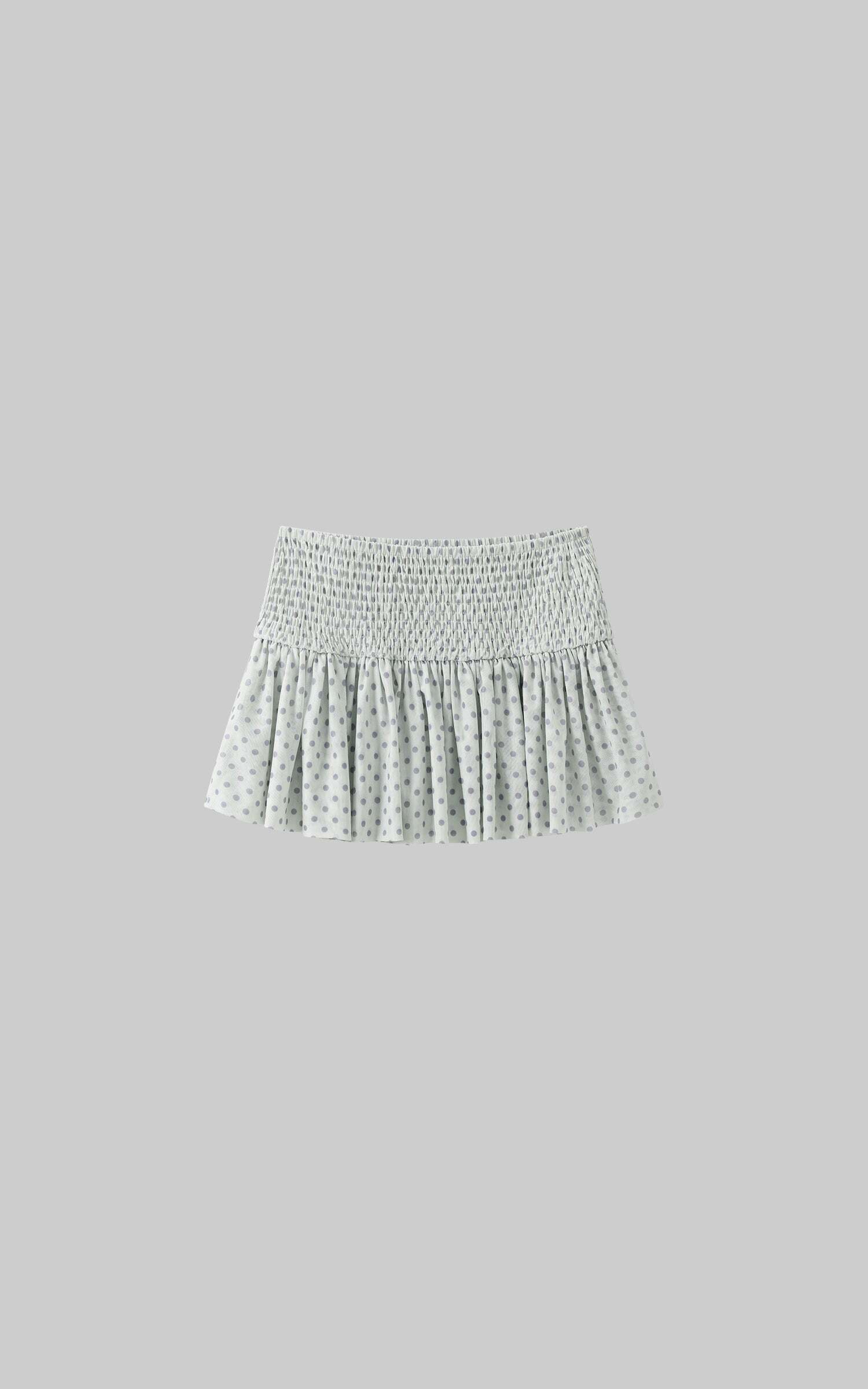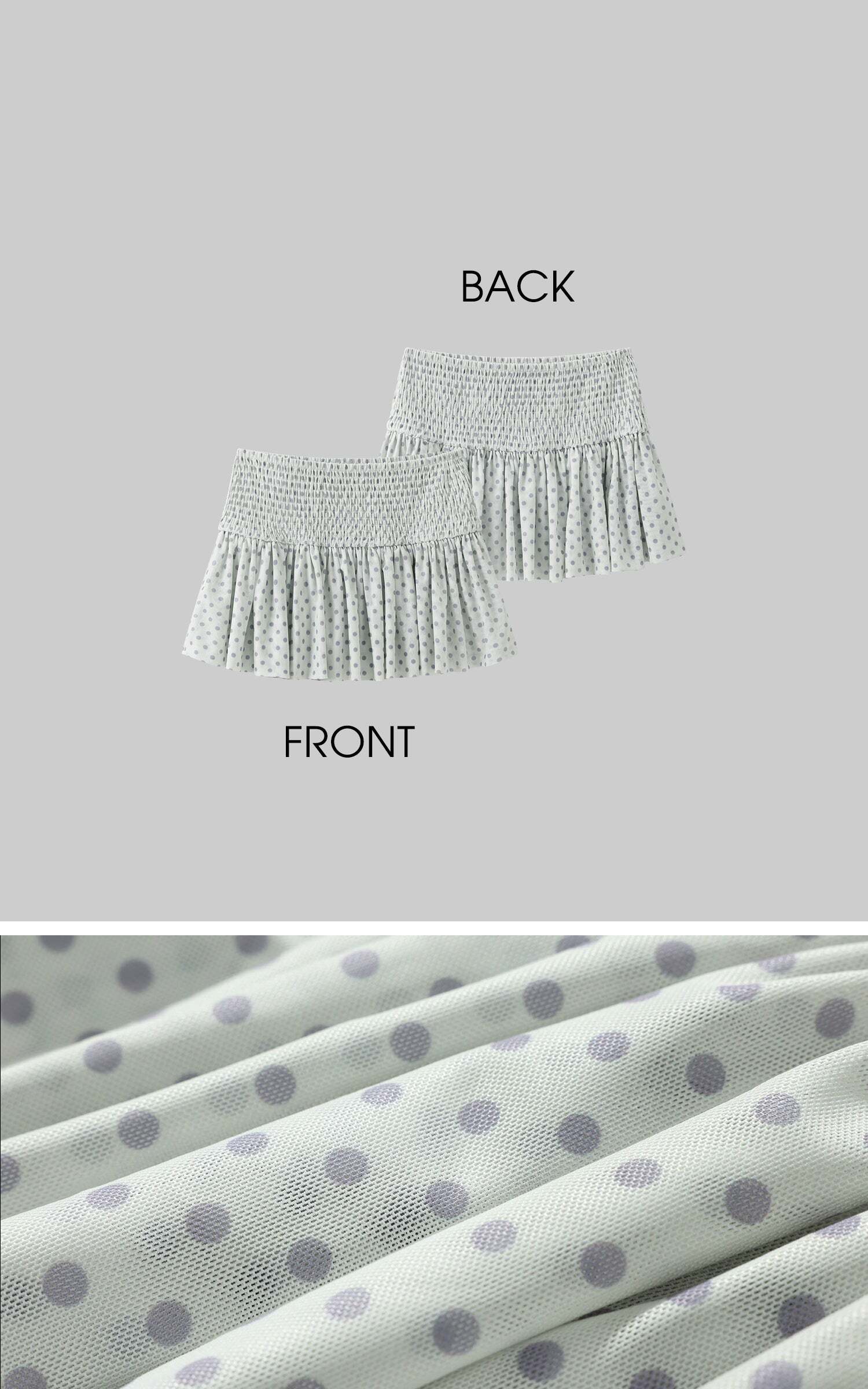 Twirl through the season in this airy and romantic ruffled mini skirt. Designed with a smocked high waistband that hugs the waist and a flared hem in sheer mesh layered with dainty polka dots, it’s playful, flirty, and ultra-lightweight. Pair it with your favorite halter top or a cropped blouse for a sweet yet breezy look.