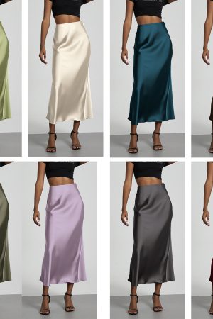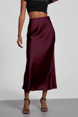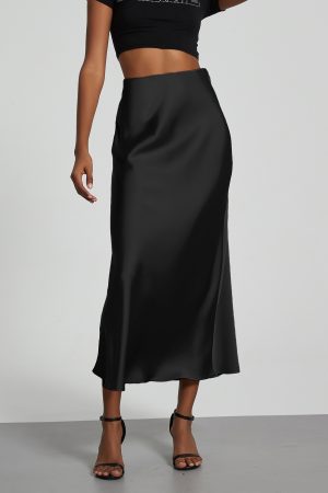 European And American Style Elegant Texture Satin Slimming Straight Mid-length Skirt