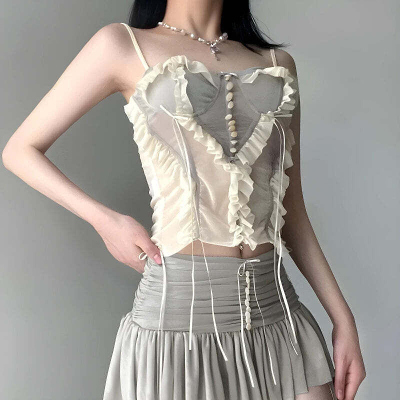Fairycore Ruffled Mesh Corset Top High-quality product featuring coquette outfit, black corset halloween costume, outfit inspo fall and more. Modern design that fits the latest trends. Premium materials ensure durability and comfort. Order now for special offers! Product designed with attention to every detail. Suitable for all occasions and personal styles.