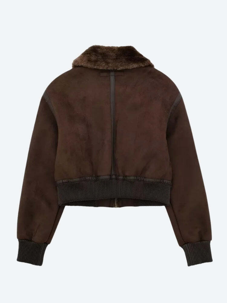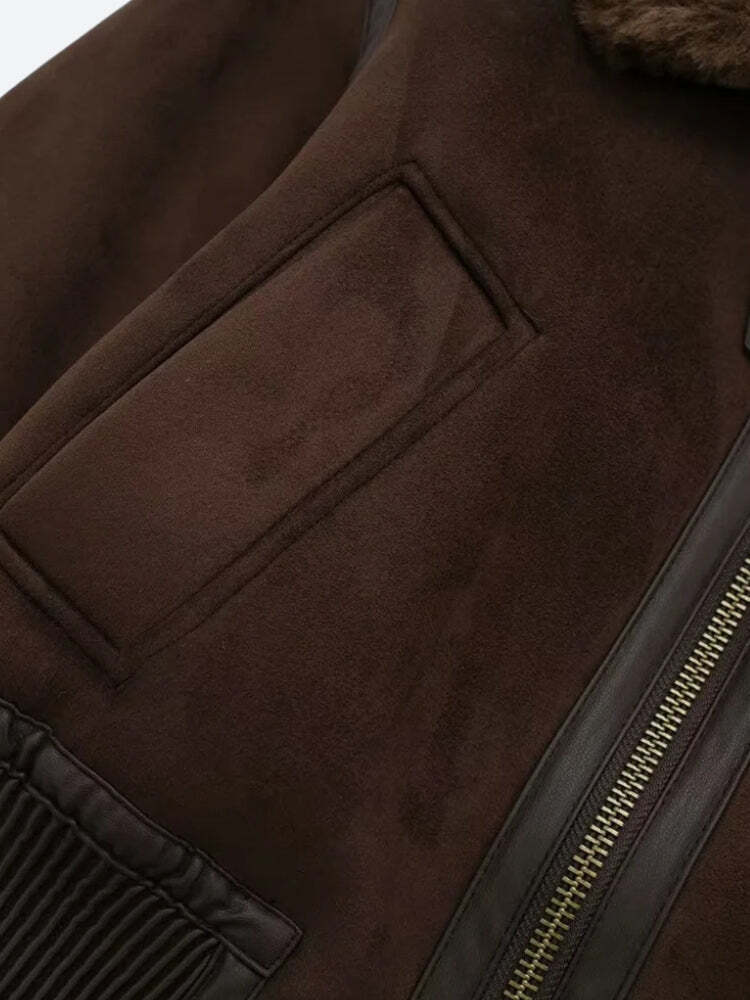 Stay effortlessly stylish with this Faux Fur Collar Zip-Up Jacket. Designed with a soft faux fur collar and ribbed cuffs, it offers warmth and a timeless aviator-inspired look. Perfect for layering in cold weather.