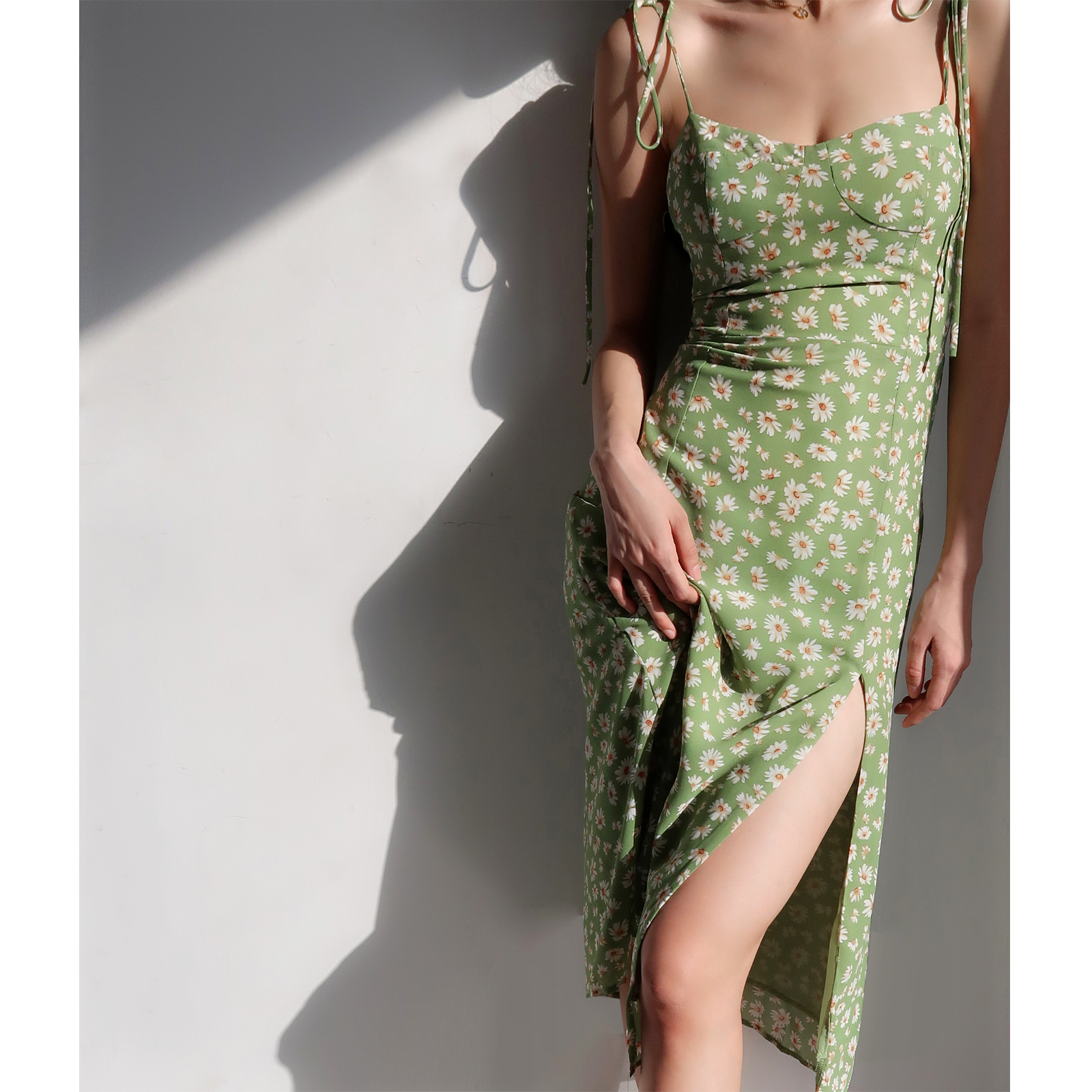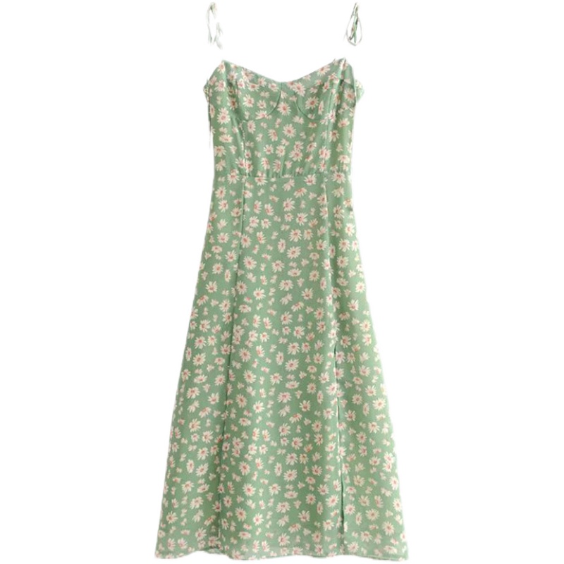 Fitted Vintage Green Side Slit Dress Small Daisies Sleeveless Mid Calf Dress High-quality product featuring hoco dresses, thanksgiving dress, spring outfit and more. Modern design that fits the latest trends. Premium materials ensure durability and comfort. Order now for special offers! Product designed with attention to every detail. Suitable for all occasions and personal styles.