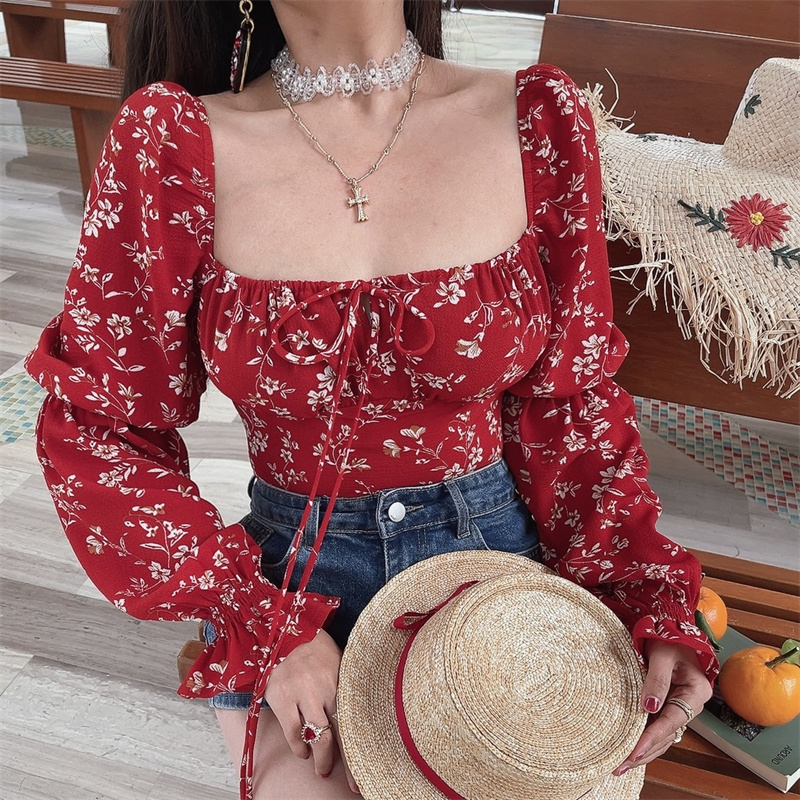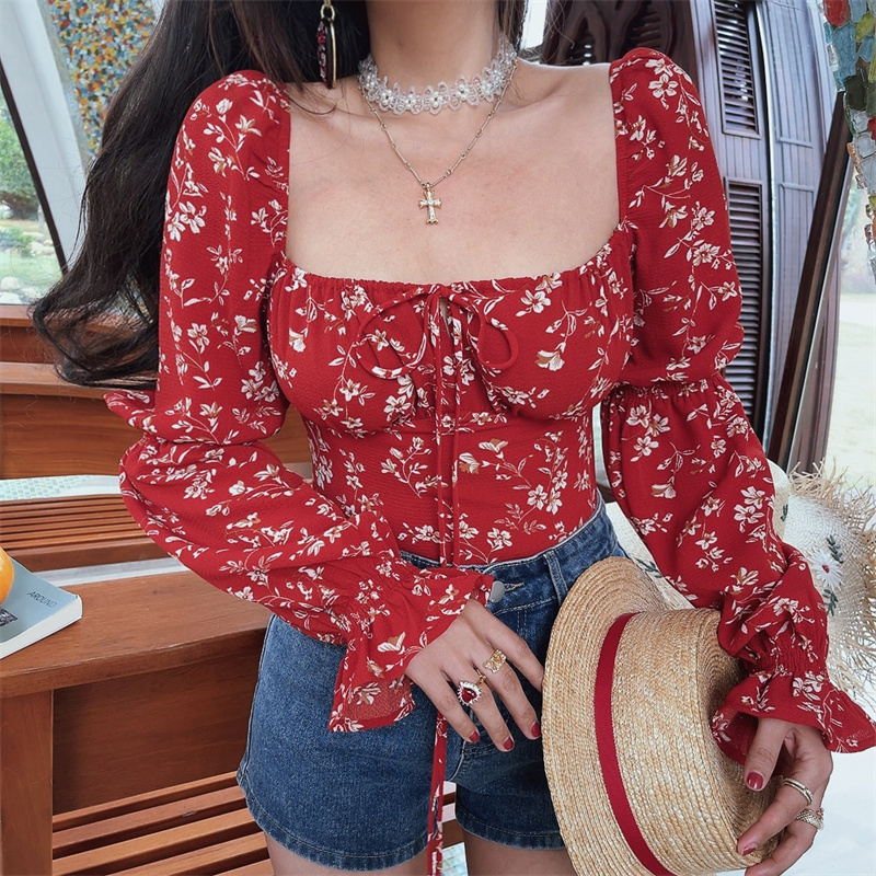 Floral Lantern Sleeve Shirt Square Neck, Drawstring Waist, Ready Spring/Summer High-quality product featuring spring outfits, summer fits, fall fits and more. Modern design that fits the latest trends. Premium materials ensure durability and comfort. Order now for special offers! Product designed with attention to every detail. Suitable for all occasions and personal styles.