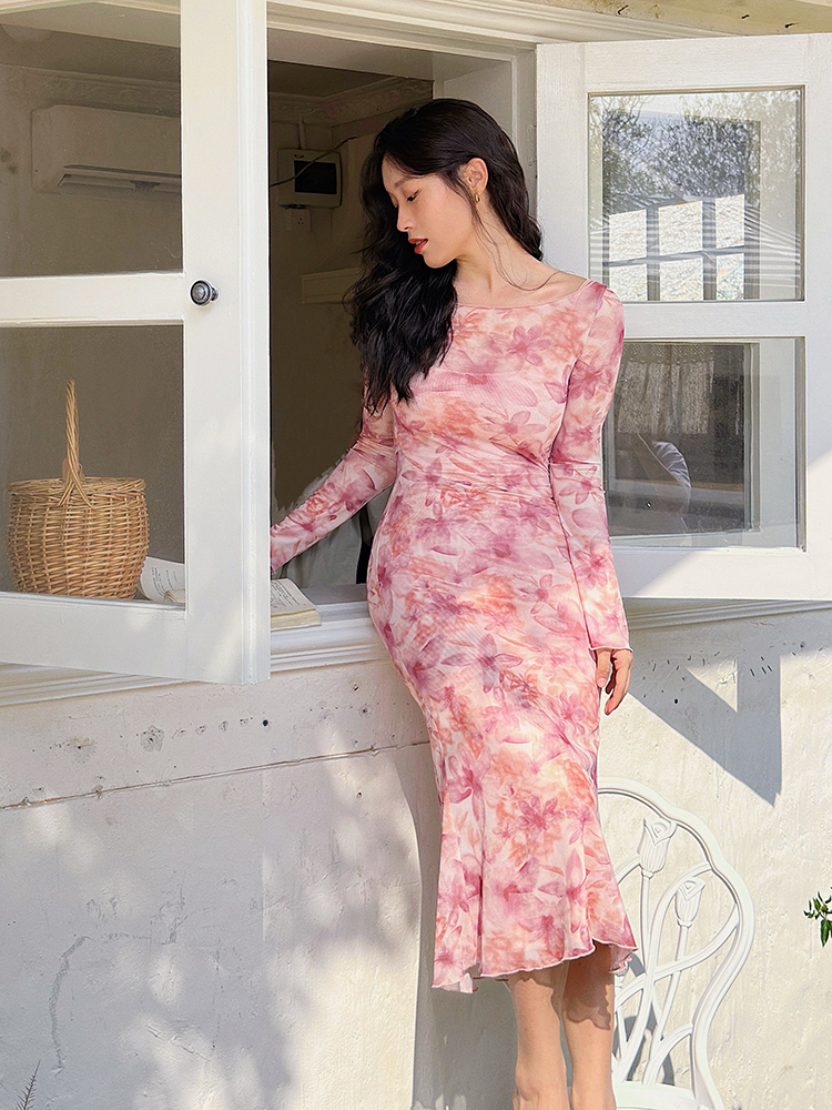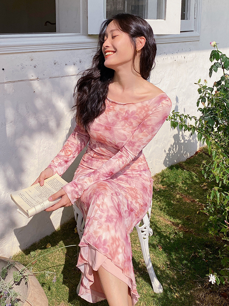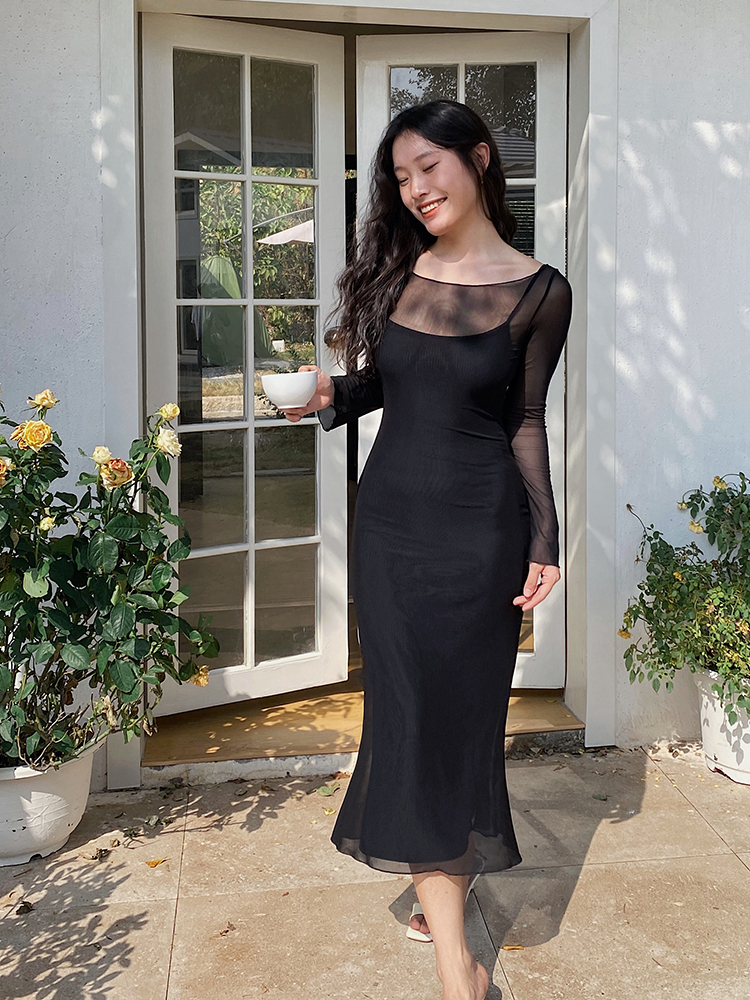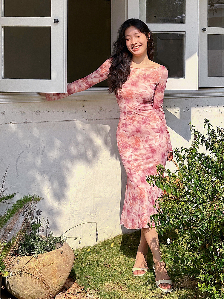 Floral Mesh Two Long Sleeve Bodycon Dress Slim Fit Long Skirt Y2k Pired – Y2k Outfits