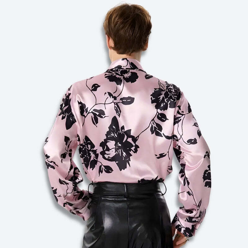 This satin top showcases an elegant floral print, complemented by a chic neck tie. The silky fabric ensures comfort and sophistication, making it a versatile choice for formal or casual settings.