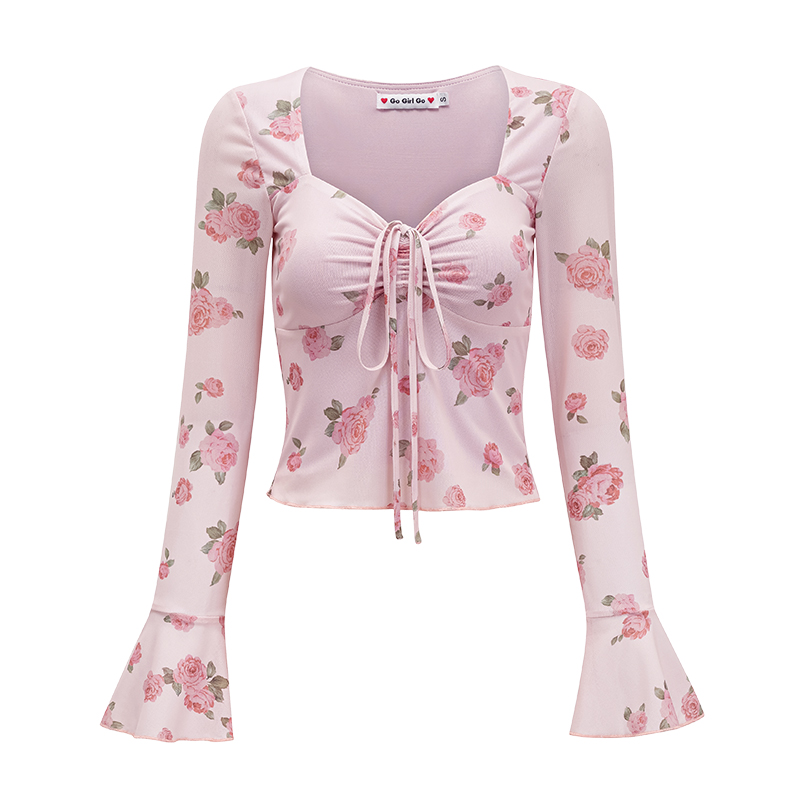 Floral Print Bell Sleeve Square Neck Shirt Women Slim Fit Long Sleeve Top DIY Sweet High-quality product featuring diy elf costume women, easy diy costumes for women, spring outfit and more. Modern design that fits the latest trends. Premium materials ensure durability and comfort. Order now for special offers! Product designed with attention to every detail. Suitable for all occasions and personal styles.