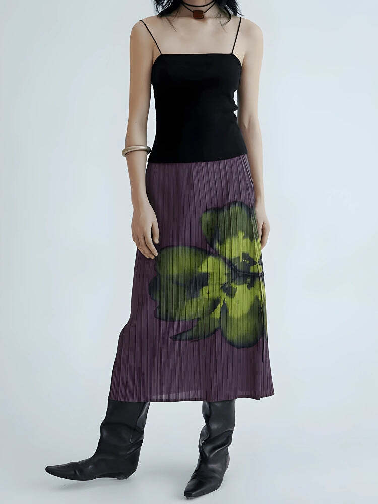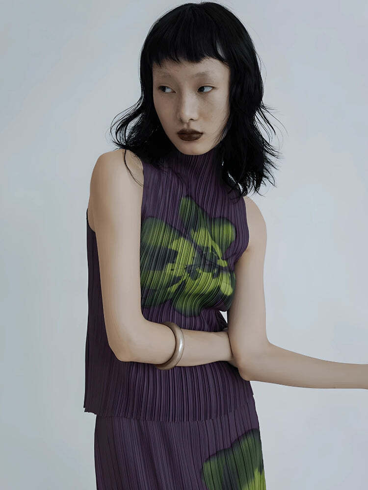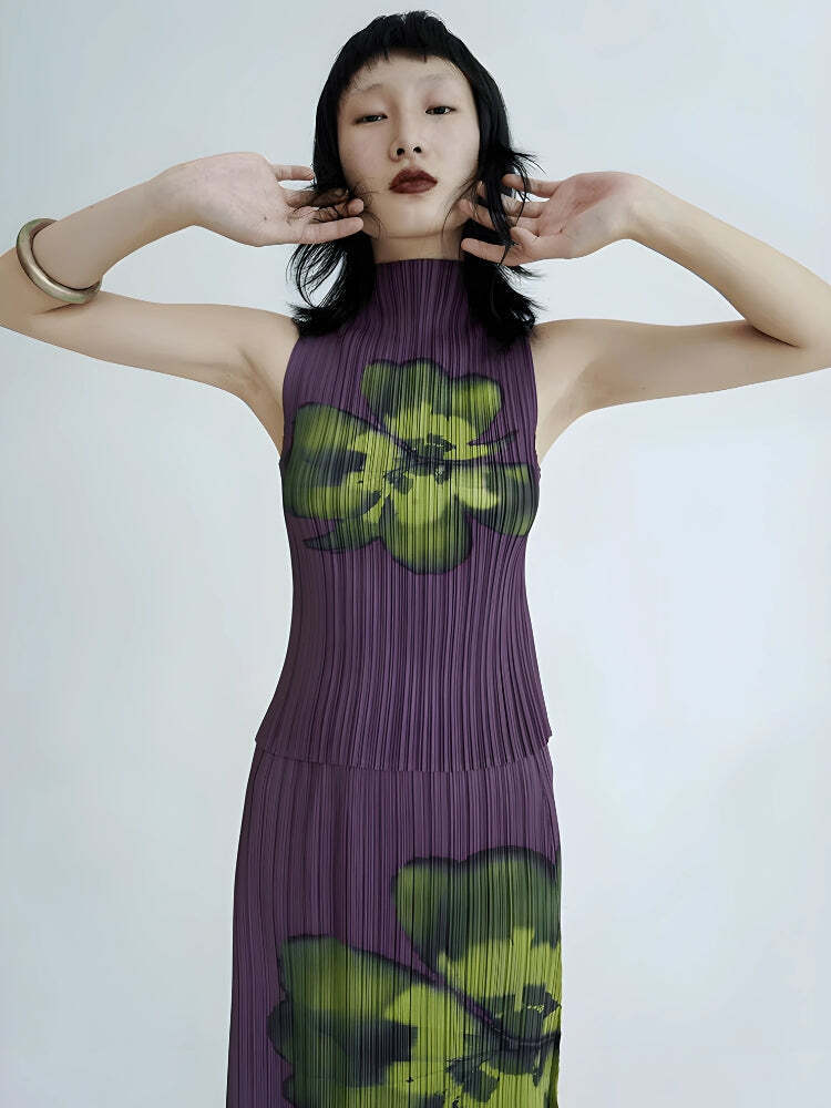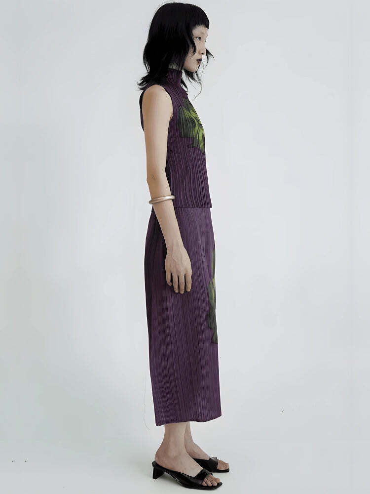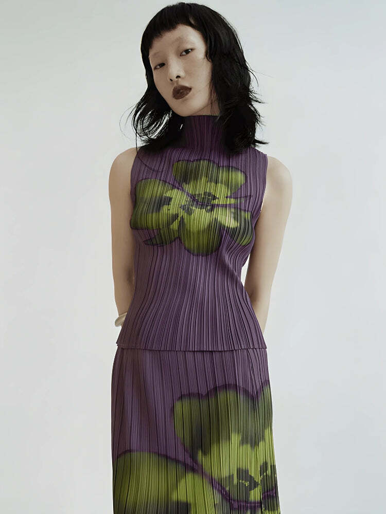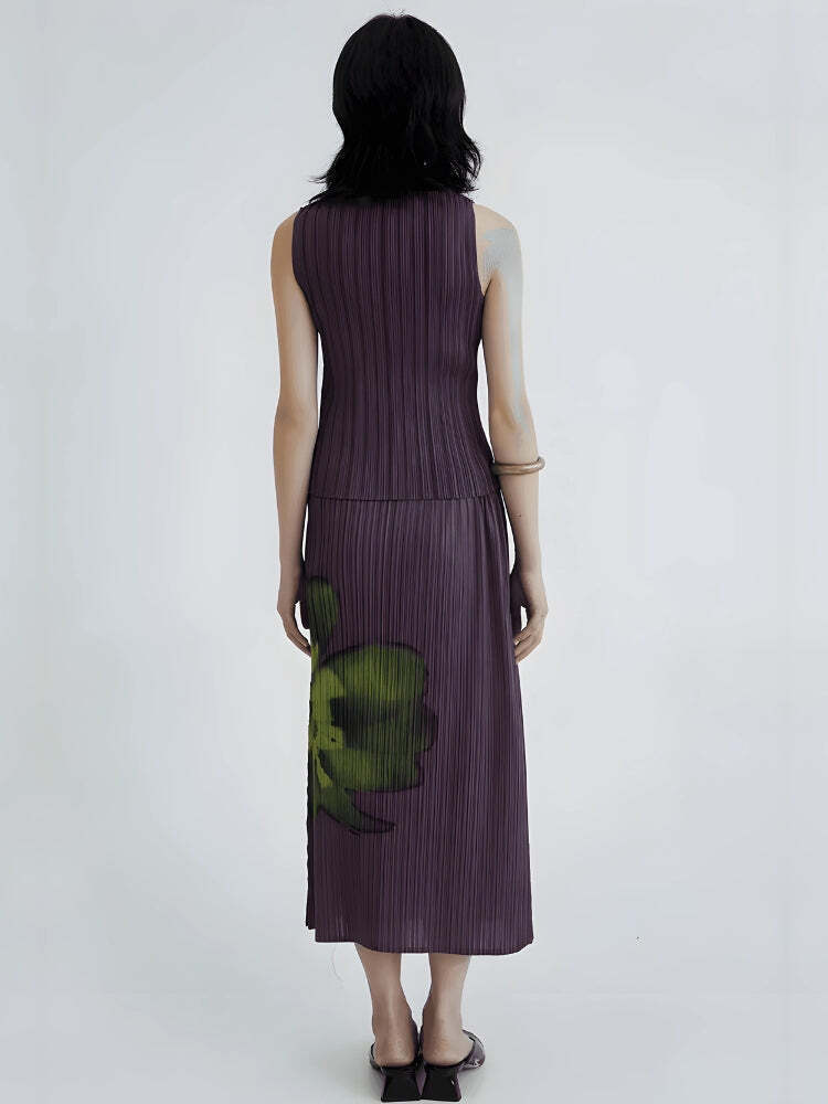 This breezy floral top and midi skirt set with a refined pleated design offers day-to-night versatility. The sleeveless top pairs seamlessly with the flowy skirt for an on-trend look.