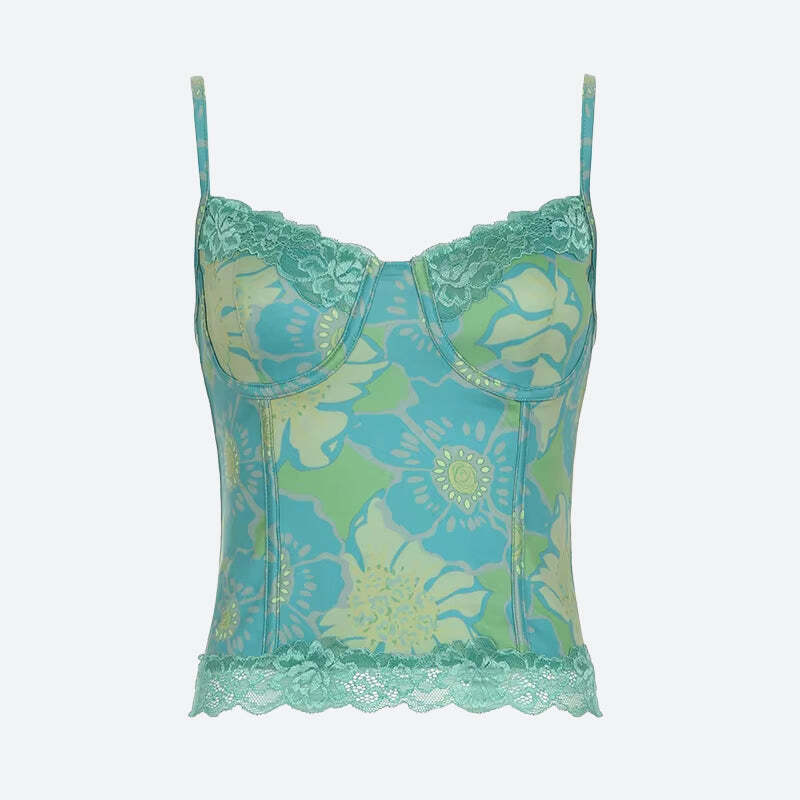 Bring romantic vibes with this floral lace top. Underwire cups and spaghetti straps offer a flattering shape, while mesh details keep it breezy. Great for parties or casual dates.