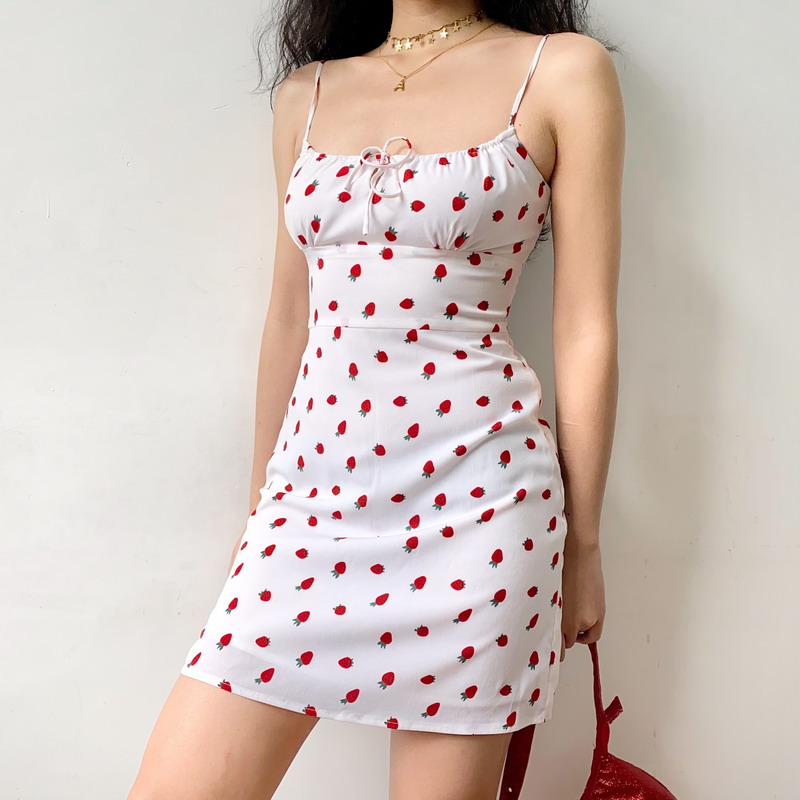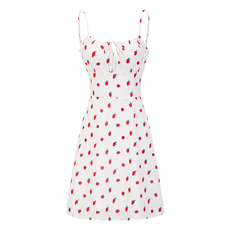 Embrace the essence of summer with our French Strawberry Print Front Tie Double Layer A-Line Camisole Dress, designed for the stylish trendsetter. This sexy DIY fashion piece features a flattering A-line silhouette that gently falls from the waist, while the playful front tie adds a touch of flirtation to your look. Perfect for warm days and evening outings, this dress is a versatile addition to your wardrobe. Elevate your summer style and make a statement add this chic dress to your cart today!