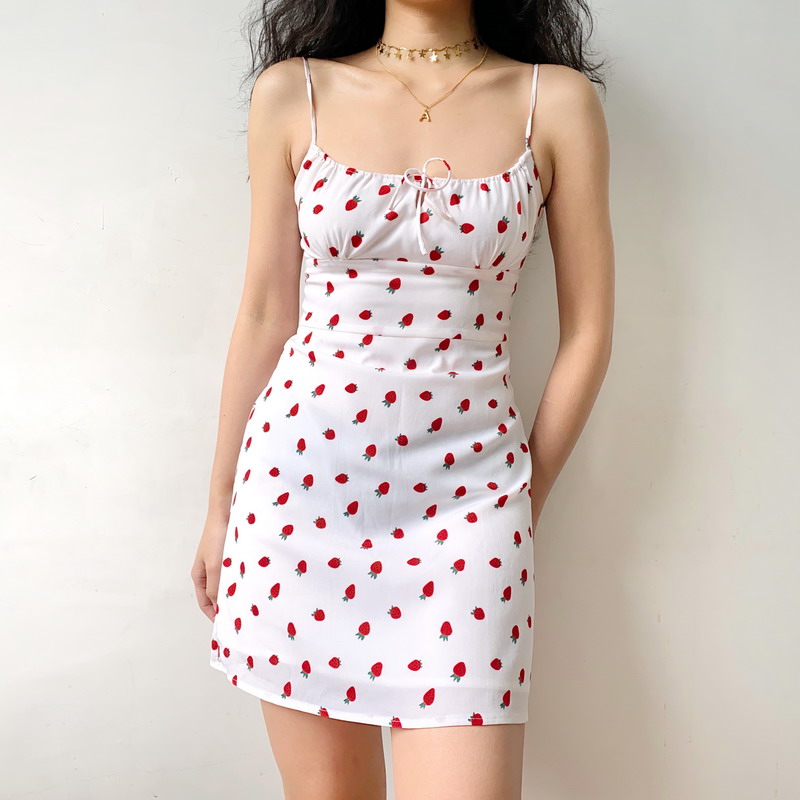 Strawberry Print Front Tie Double Layer A Line Camisole Dress DIY Summer High-quality product featuring strawberry shortcake costume, diy costumes for women, outfit ideas and more. Modern design that fits the latest trends. Premium materials ensure durability and comfort. Order now for special offers! Product designed with attention to every detail. Suitable for all occasions and personal styles.