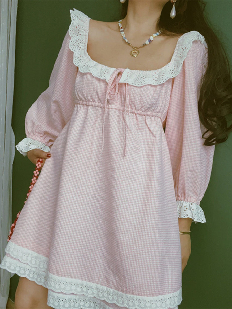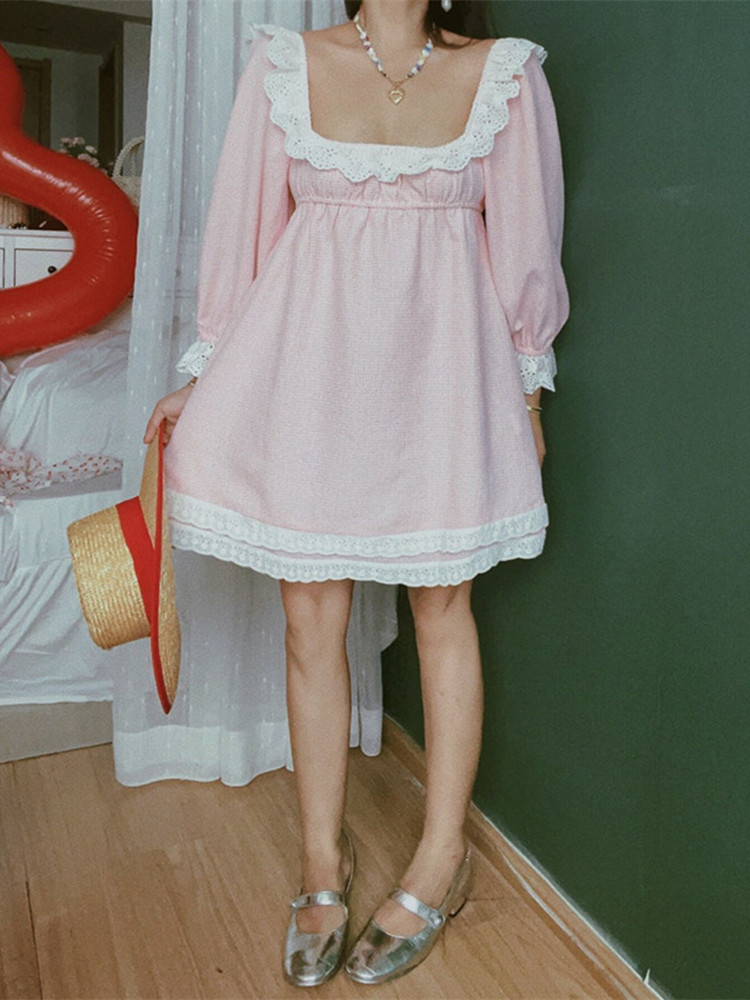 Vintage Lace Trim Square Neck Dress Chenopod Sweet Powder Moonlight pring/Summer, Y2K High-quality product featuring hoco dresses, thanksgiving dress, holiday dresses and more. Modern design that fits the latest trends. Premium materials ensure durability and comfort. Order now for special offers! Product designed with attention to every detail. Suitable for all occasions and personal styles.