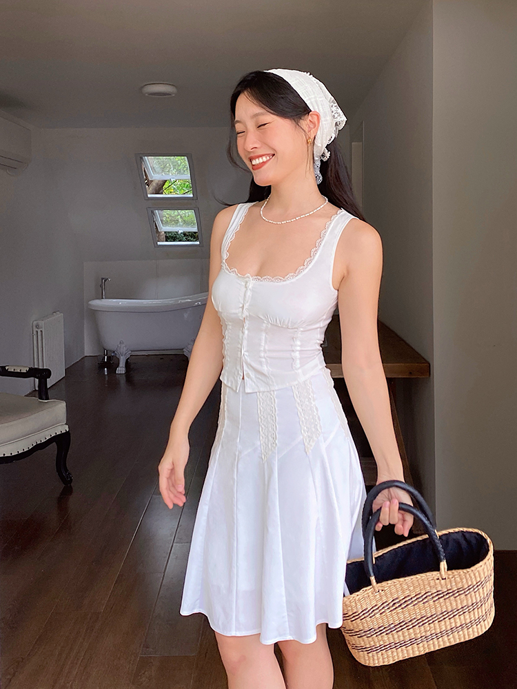 Elevate your wardrobe with our French Vintage Lace Vest Top, designed in a stunning white slim-fit that hugs your curves beautifully. This versatile short-style top blends Y2K and 90s fashion, making it perfect for layering or wearing solo for a chic, sexy look. Don’t miss out on this must-have piece that effortlessly combines elegance and trend add it to your cart today!