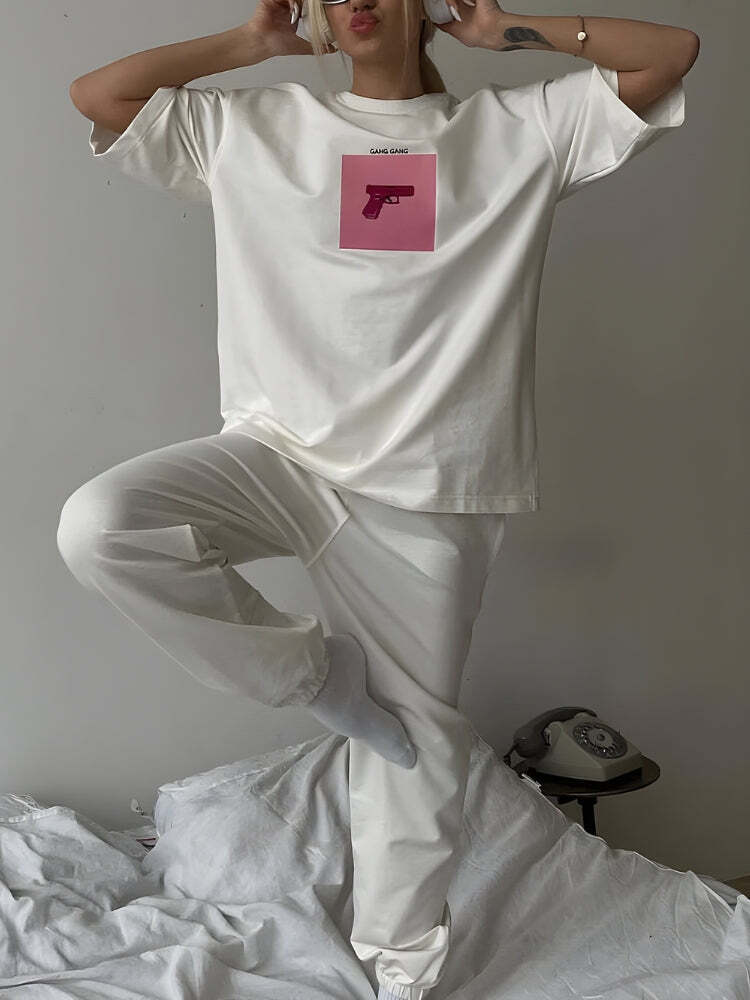 Exude confidence in the Girl Gang Tee. Its edgy print and relaxed shape keep your look fresh, while the soft fabric feels easy all day. Wear it with joggers or leggings for a laid-back vibe.