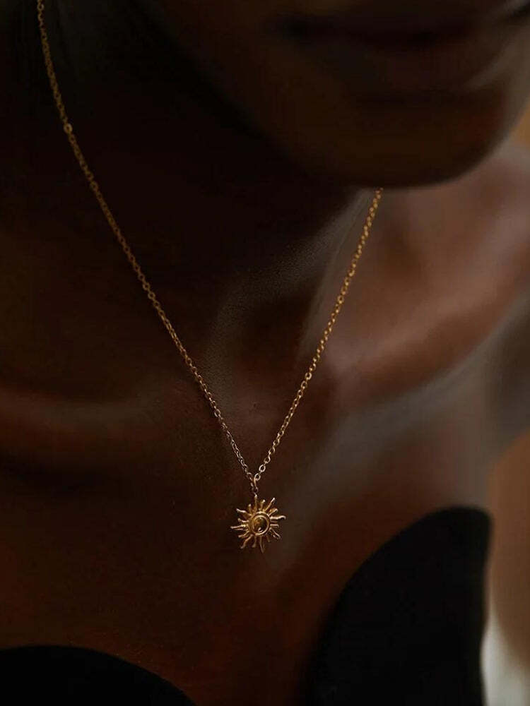 Gold Sun Necklace High-quality product featuring outfit inspo, summer fits, 90s fashion and more. Modern design that fits the latest trends. Premium materials ensure durability and comfort. Order now for special offers! Product designed with attention to every detail. Suitable for all occasions and personal styles.