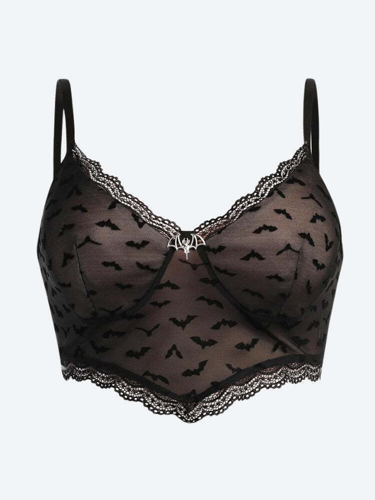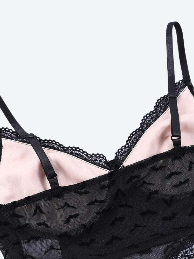 Goth Bat Mesh Bustier Crop Top – Black Corset Halloween Costume