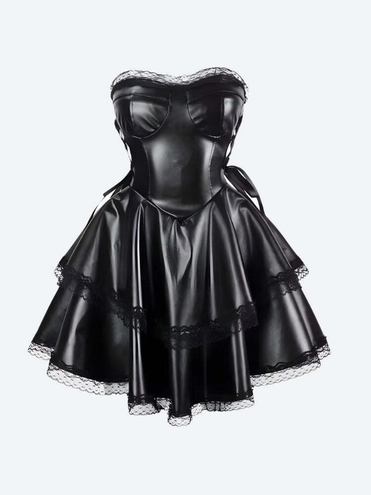 Goth Faux Leather Mini Dress – Vampire Costume Aesthetic