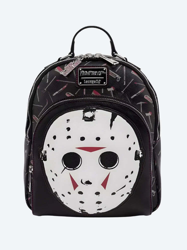 The Goth Friday the 13th Backpack is perfect for horror fans, showcasing Jason Voorhees’ iconic hockey mask. With spacious compartments, it’s great for daily use or adding a chilling touch to horror-themed events.