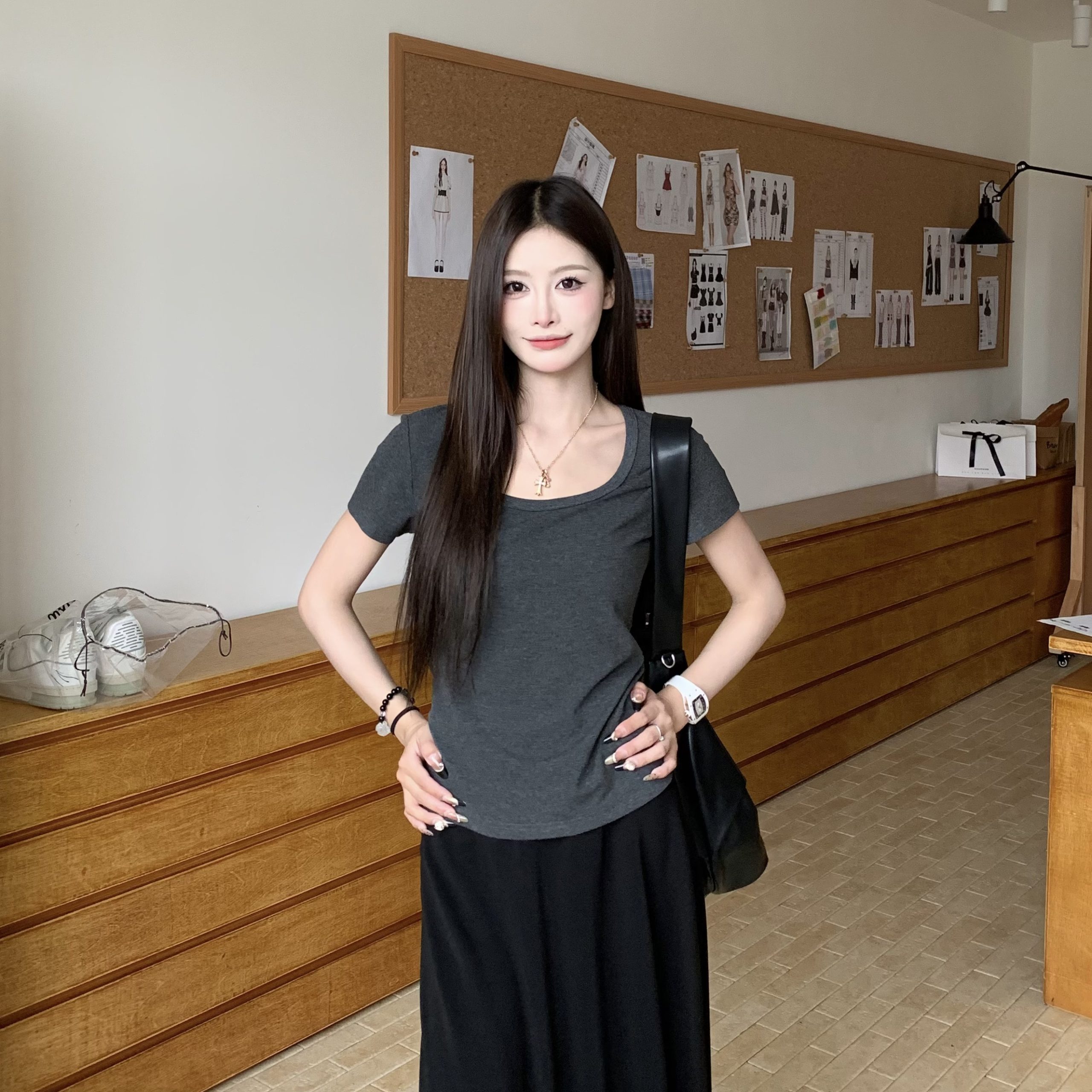 Gray Square Neck Short Sleeve Women Summer Loose Slim Fit Top Casual Y2K Girl Tee High-quality product featuring summer fits, casual summer outfits, fall fits and more. Modern design that fits the latest trends. Premium materials ensure durability and comfort. Order now for special offers! Product designed with attention to every detail. Suitable for all occasions and personal styles.