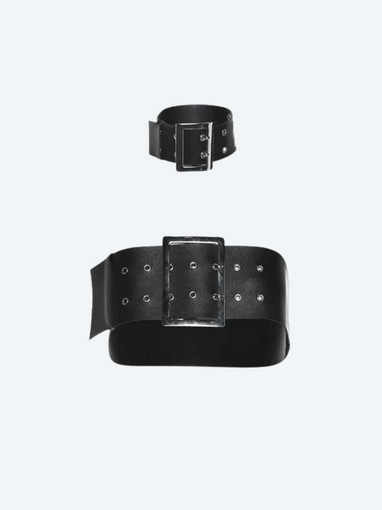 Push the edge with this grunge belt crop top, designed to look like a bold oversized belt. With silver grommet details and a chunky buckle front, it’s perfect for layering over mesh, tees, or dresses. A statement piece for alt fashion lovers and Y2K rebels alike.