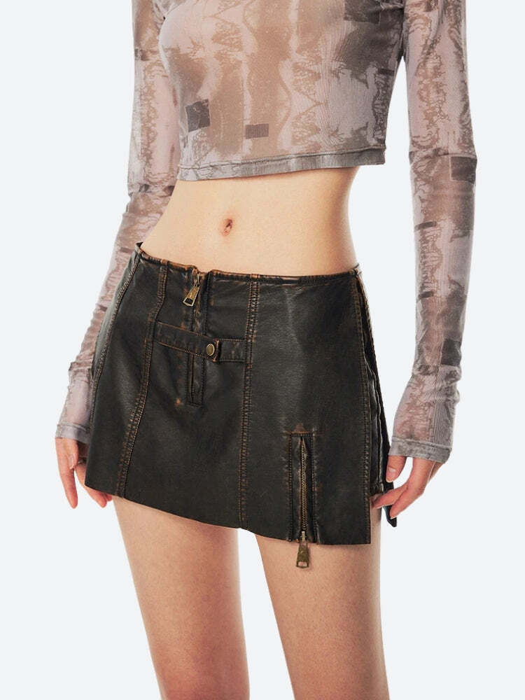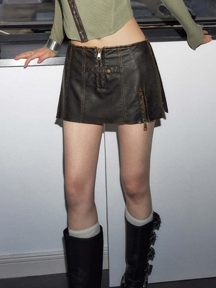 Grunge Faux Leather Slit Mini Skort – Grunge Outfits