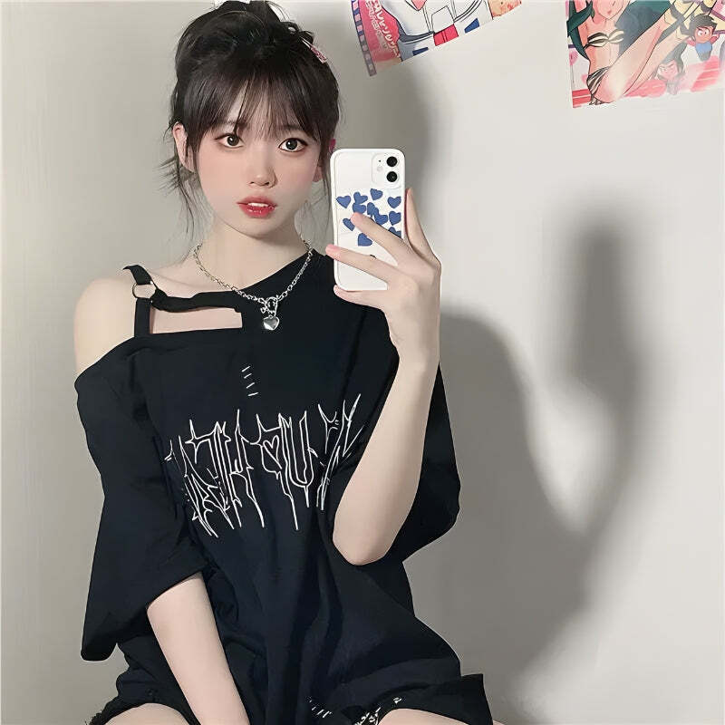 Grunge Outfits: Elevate Your Bold Make-up Look with a Heart Long Tee